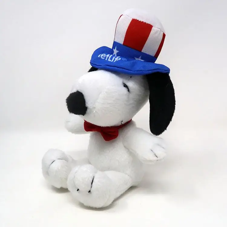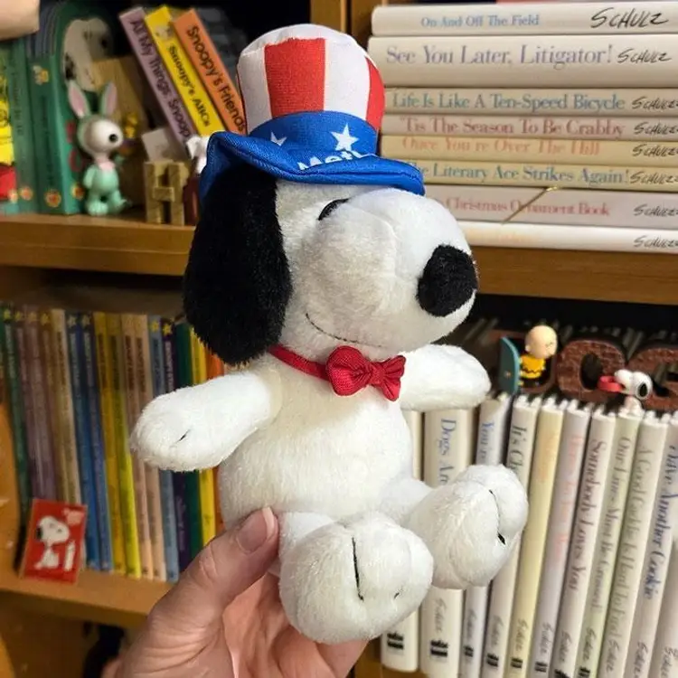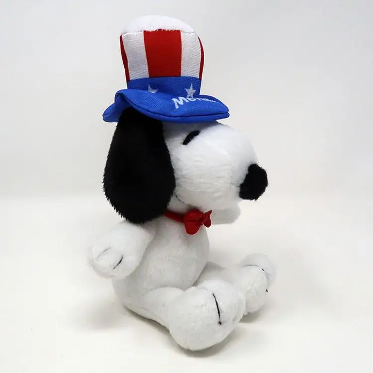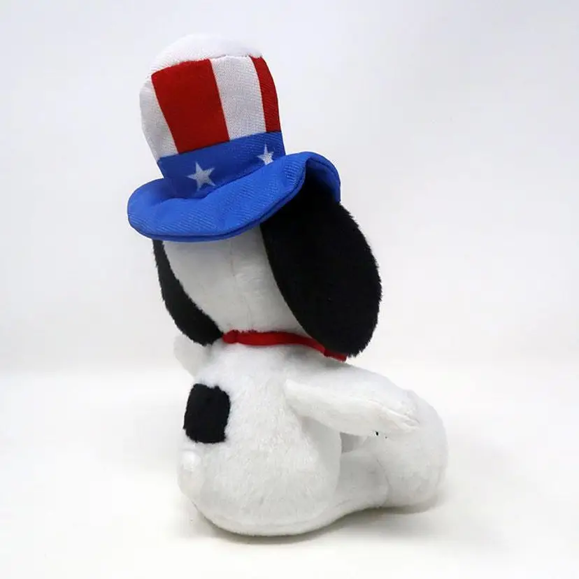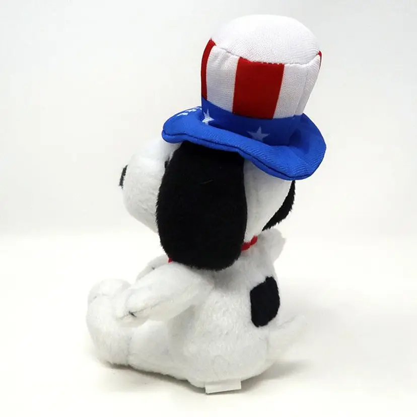 Show your love for Snoopy and the USA with this adorable Patriotic Snoopy Plush. Dressed in an Uncle Sam hat and a red bow tie, this plush is perfect for any Peanuts fan. Great for display or cuddling, this collectible adds a festive touch to your Peanuts collection.