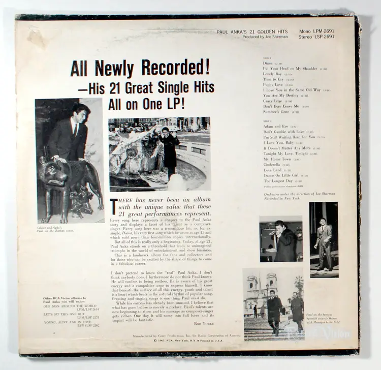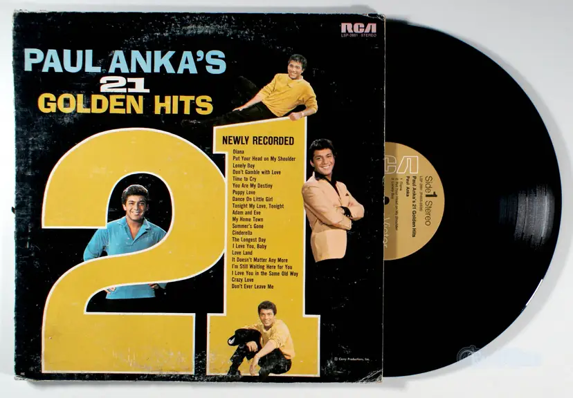 21 Golden Hits, by Paul Anka, is a collection of his signature hit songs including Diana, Lonely Boy, and Put Your Head on My Shoulder. And of course what Anka collection would be complete without Puppy Love?