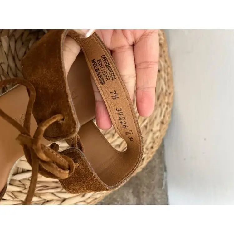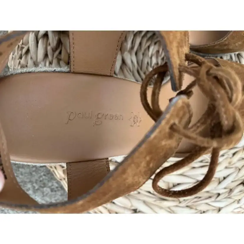 Closure: Lace Up US Shoe Size: 7.5 Color: Brown Lining Material: Leather Heel Height: High (3-3.9 in) Brand: Paul Green Type: Sandal Department: Women Heel Style: Wedge Style: Gladiator Outsole Material: Leather Upper Material: Suede Insole Material: Leather