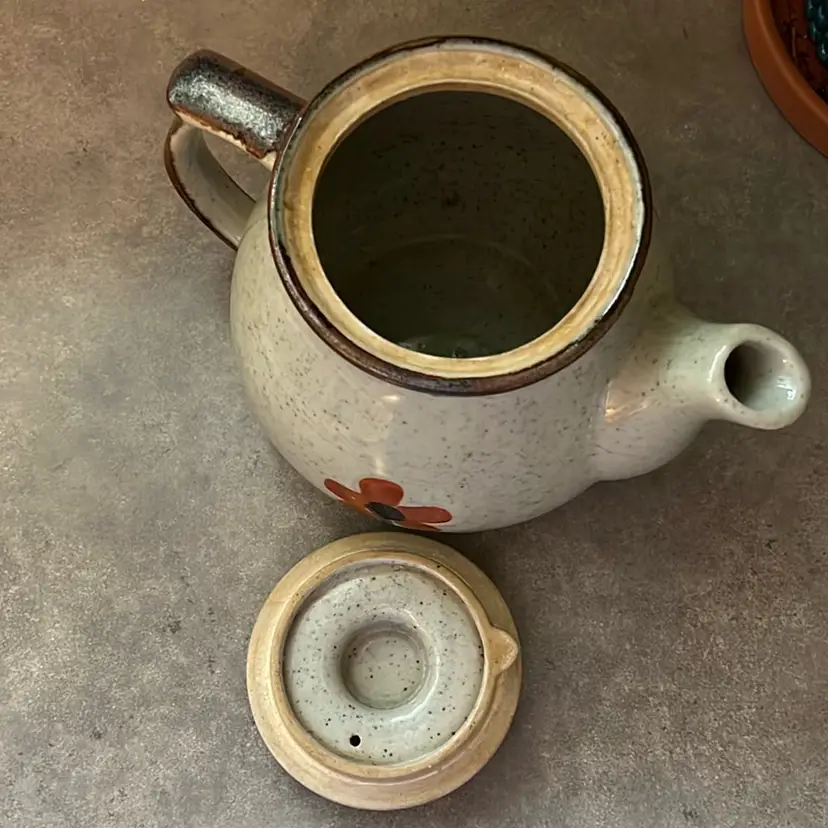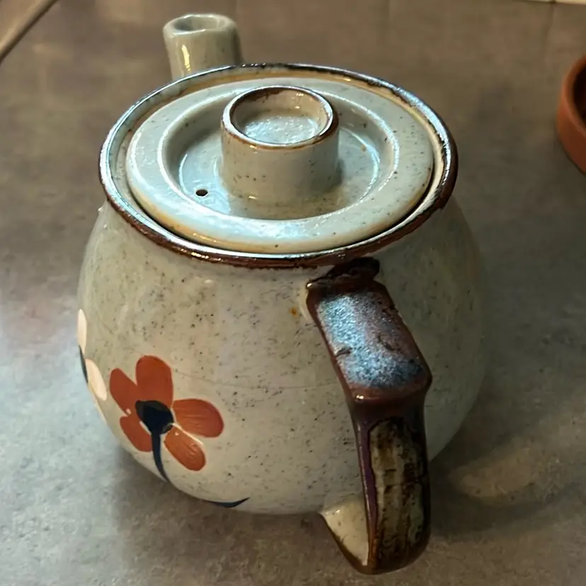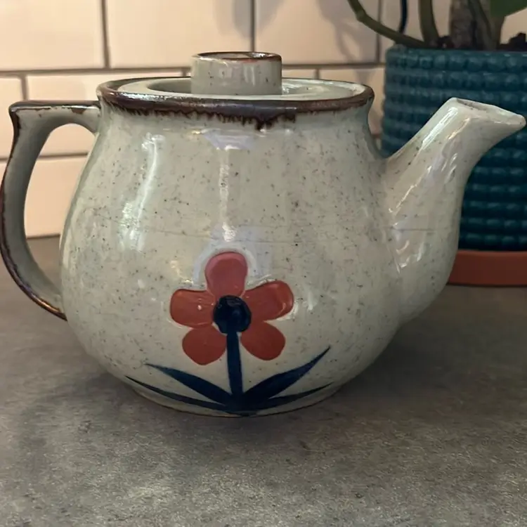 This charming and rustic vintage teapot from Paul Marshall Ceramics features a classic Mid-Century Modern design. Crafted in Japan, it showcases the beautiful artistry of stoneware pottery from the 1970s or 1980s. A perfect addition for collectors of MCM ceramics or anyone looking for a unique and functional teapot.