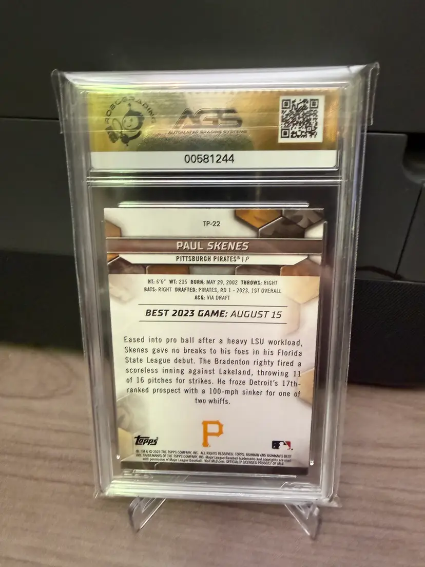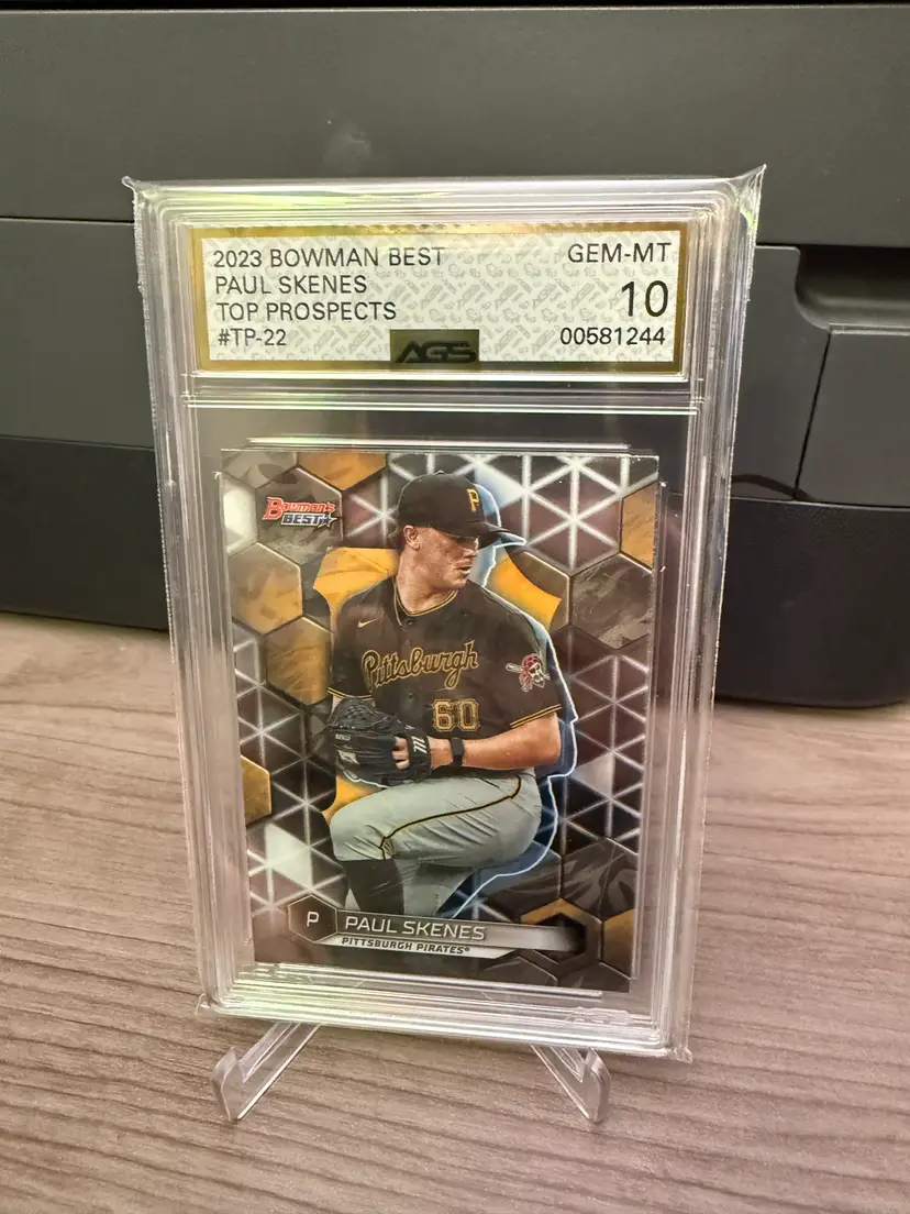 Paul Skenes 2023 Bowman's Best Prospects card, graded GEM-MT 10. A must-have for collectors.