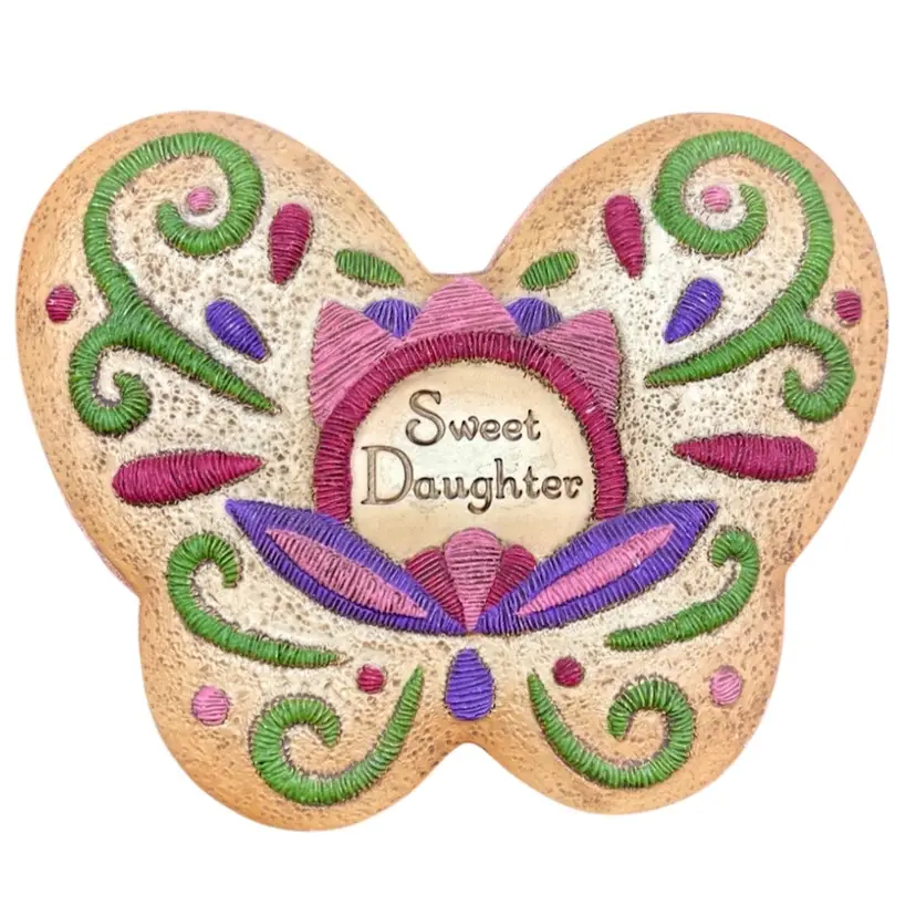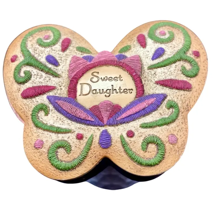This beautiful Pavilion Gift Company/Country Soul heart keepsake box is the perfect gift for a sweet daughter. The multicolor resin box features a modern design with the words "Sweet Daughter" on the lid. Inside, there is a heartfelt message that will bring a smile to your daughter's face every time she opens it. Crafted in China, this keepsake box is a wonderful gift for birthdays, holidays, or just to show your daughter how much you care.
