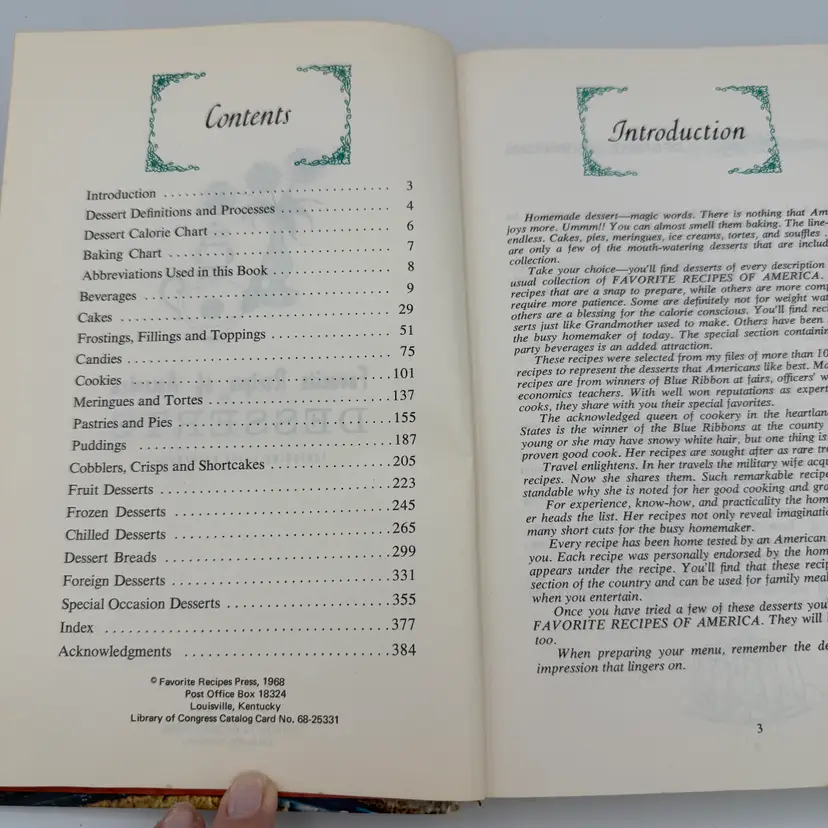 Favorite Recipes of America - Desserts (Including Party Beverages) Cookbook. Copyright 1968. Hardcover. Illustrated with traditional recipes ranging from simple to complicated. Overall good vintage condition.