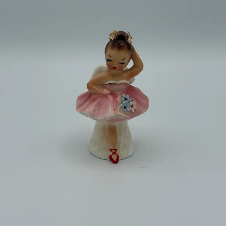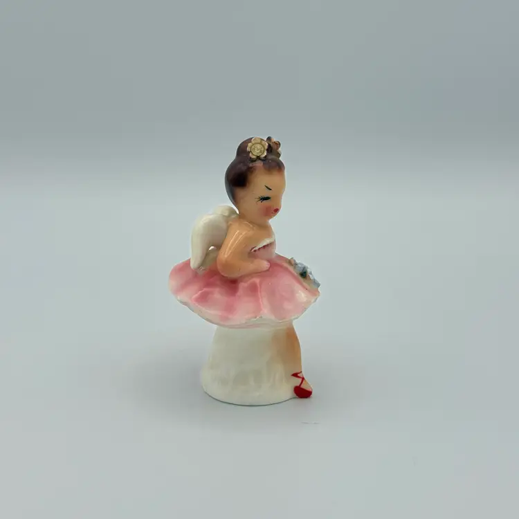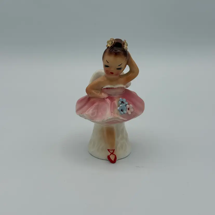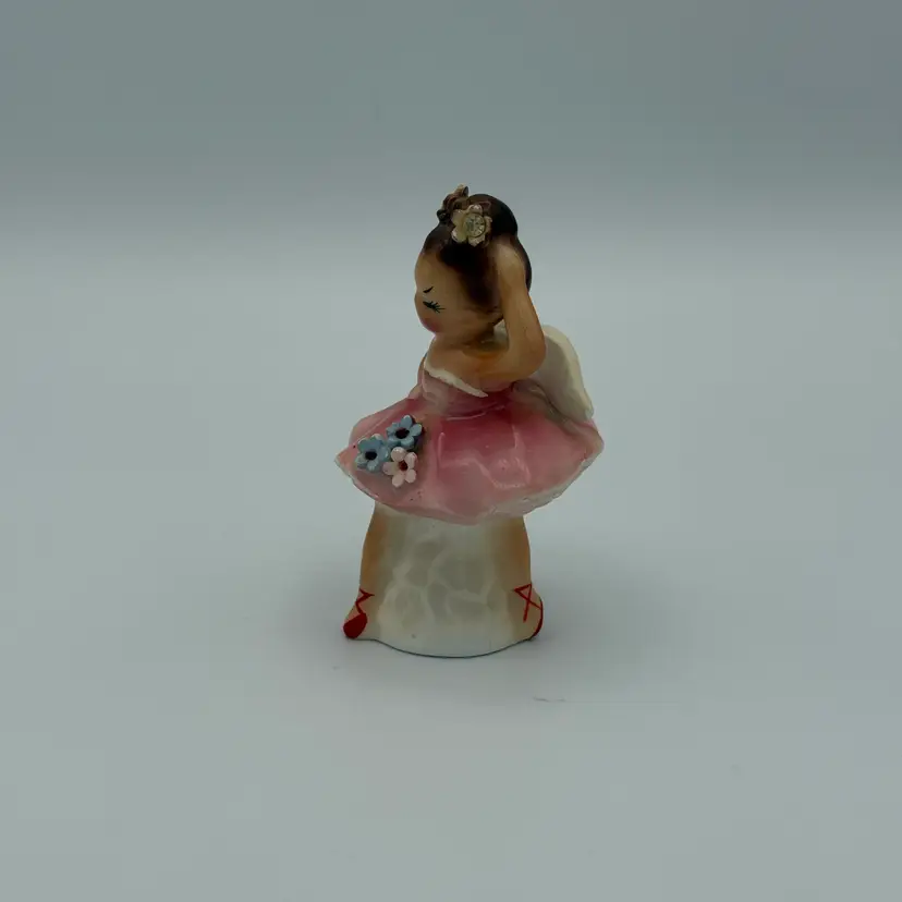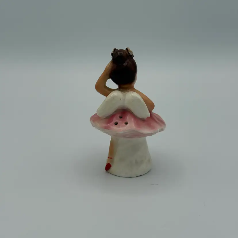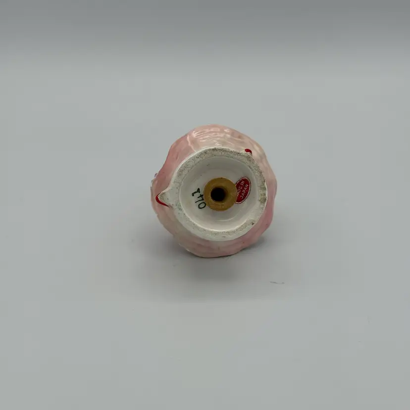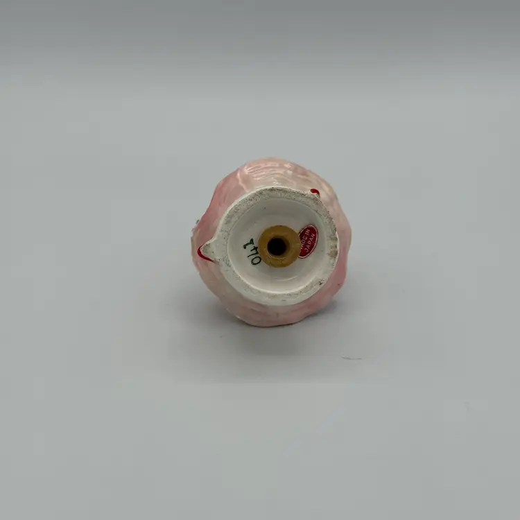 Lefton #041 Pink Ballerina Single Shaker/Figurine. Floral rhinestones in hair - pink tutu - applied flowers on tutu - red ballet shoes. Includes stopper. Has a few glaze chips on bottom of dress and at base. Also has crazing commensurate with age. Made in Japan.