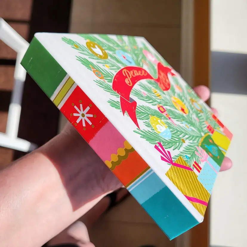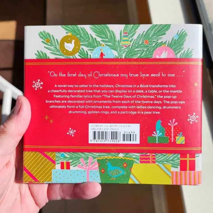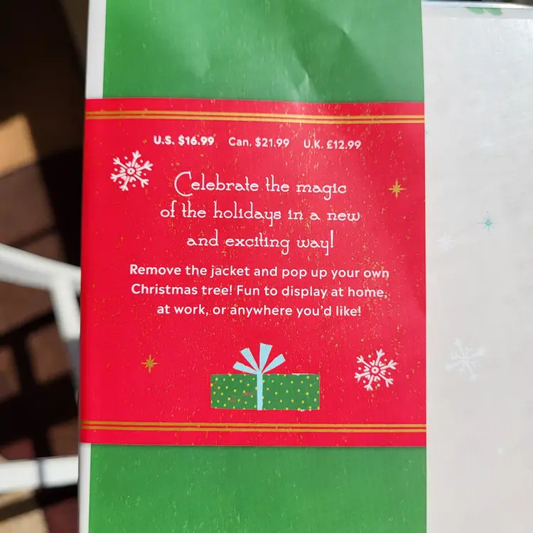 Jacket comes off and the ornaments pop up and create a Christmas tree. Able to be displayed around the house as decoration.