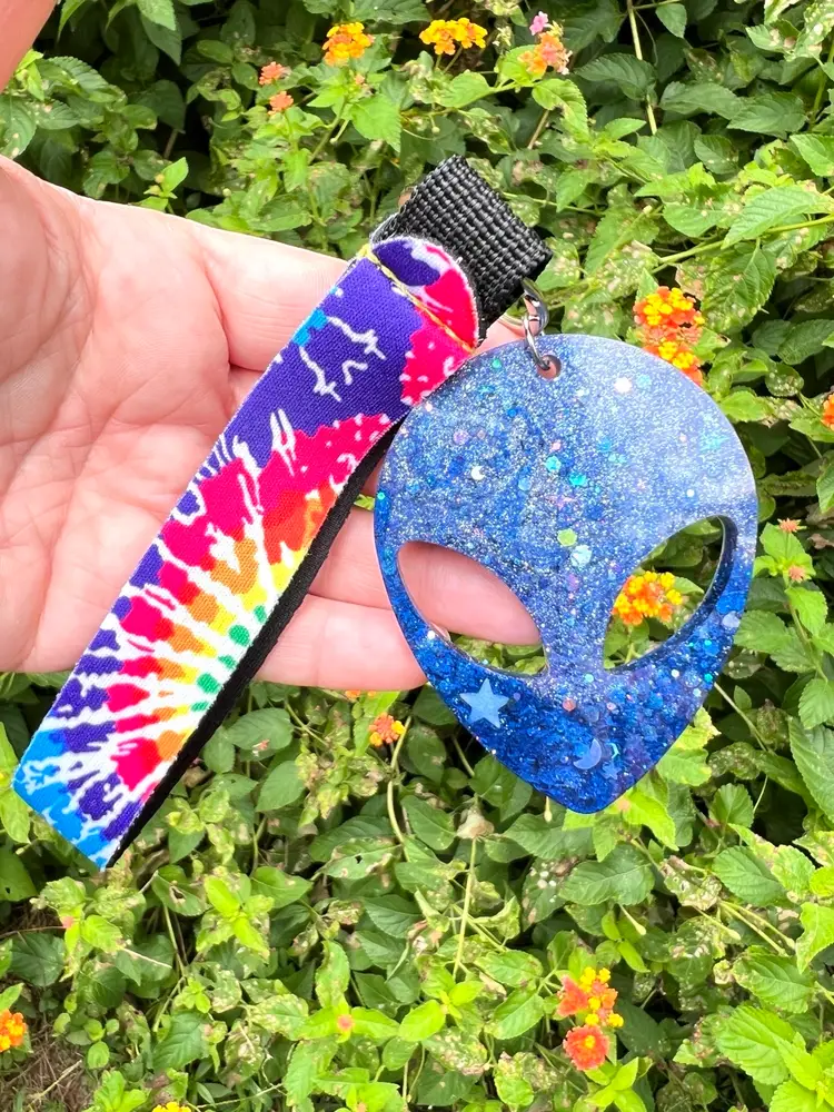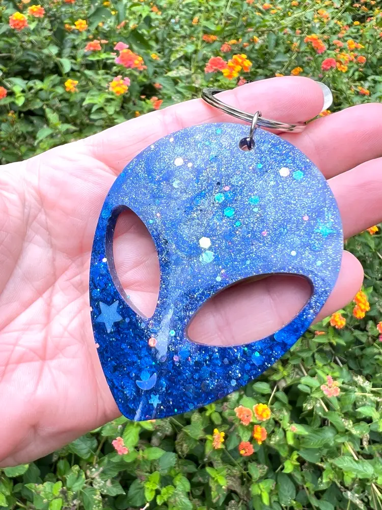 Handmade by me 🫶 Resin galactic alien 👽 with groovy keychain strap Alien’s Official title: Supreme Leader of All That It Surveys Nickname: Jim
