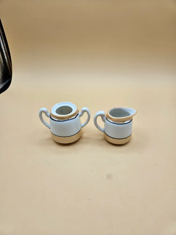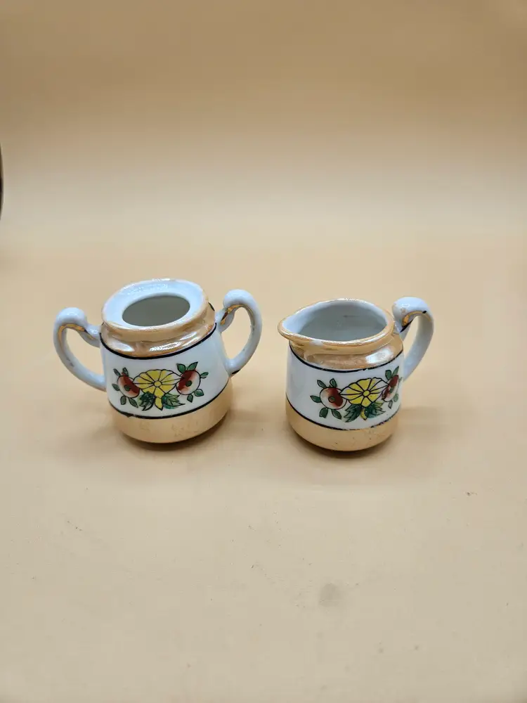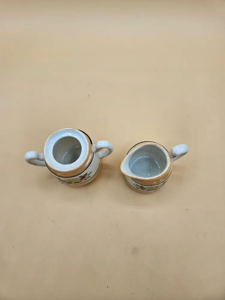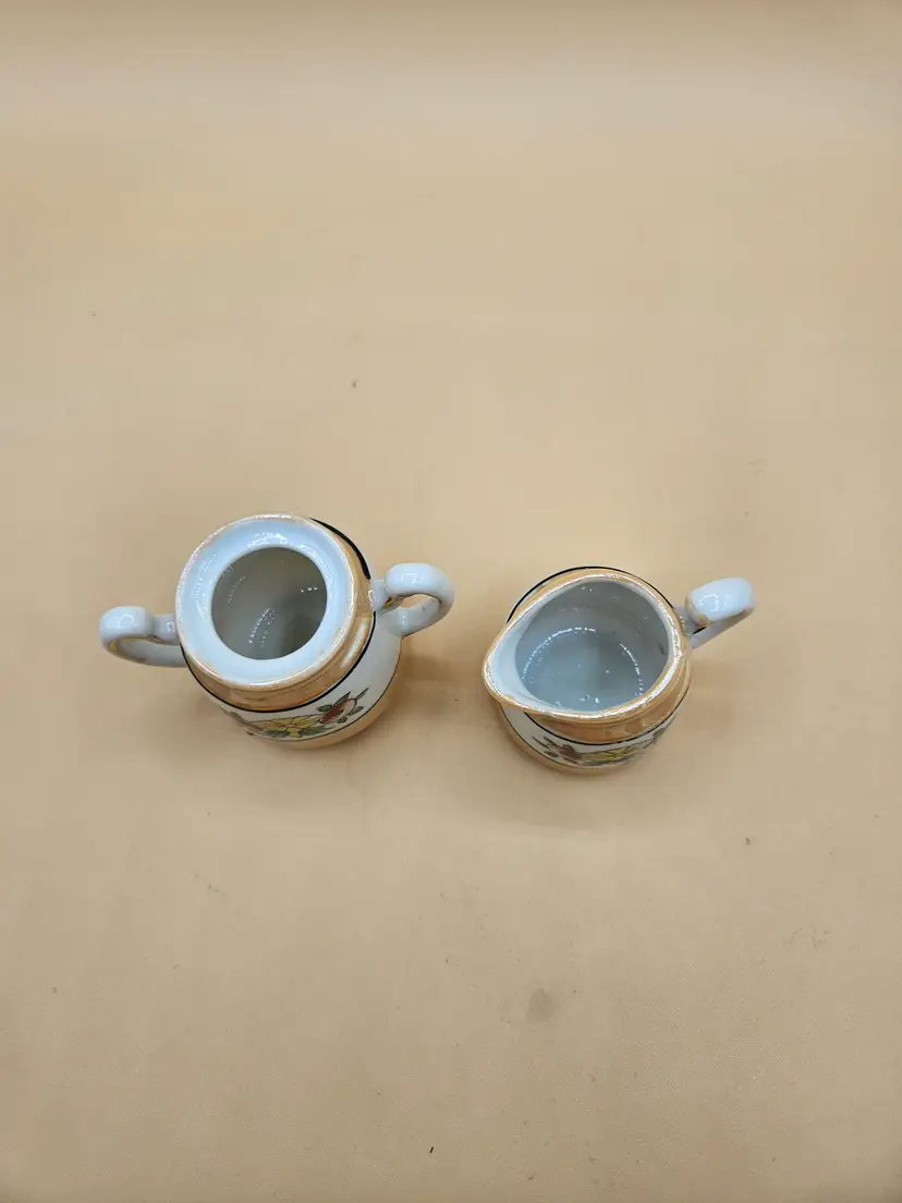 See pictures for chip on creamer, missing lid on sugar & other defects.