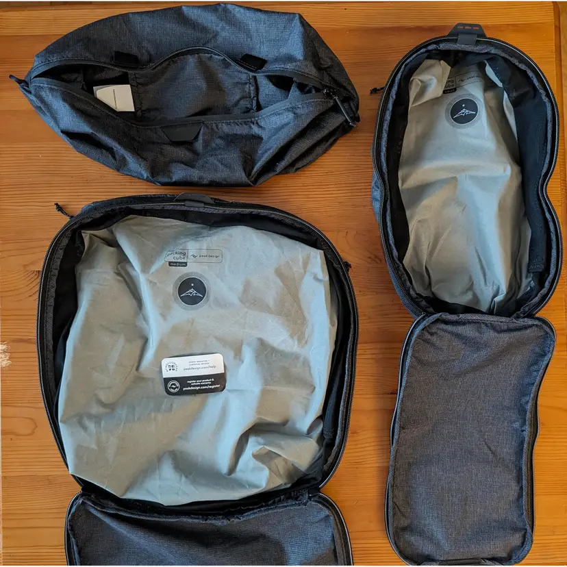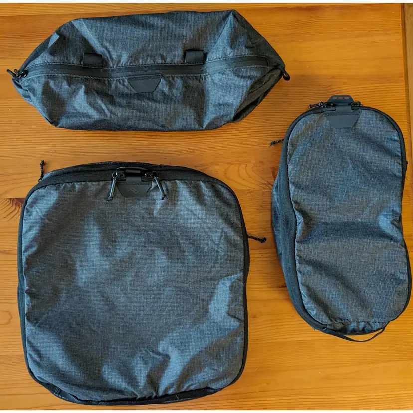 Great condition, set of three. Medium, Small and Shoe Pouch in charcoal. The most popular/highly rated compressible packing cube set. Save on shipping by ordering from me.