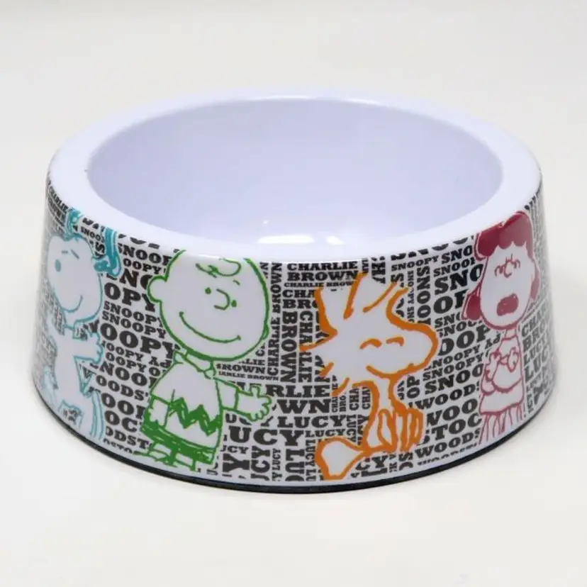 Make mealtime fun for your furry friend with this Peanuts Character Pet Bowl. Featuring beloved characters like Snoopy, Charlie Brown, Woodstock, and Lucy, it's perfect for any Peanuts fan. Durable and easy to clean Melamine, this bowl adds a playful touch to your pet's dining experience. Shows minor signs of use.