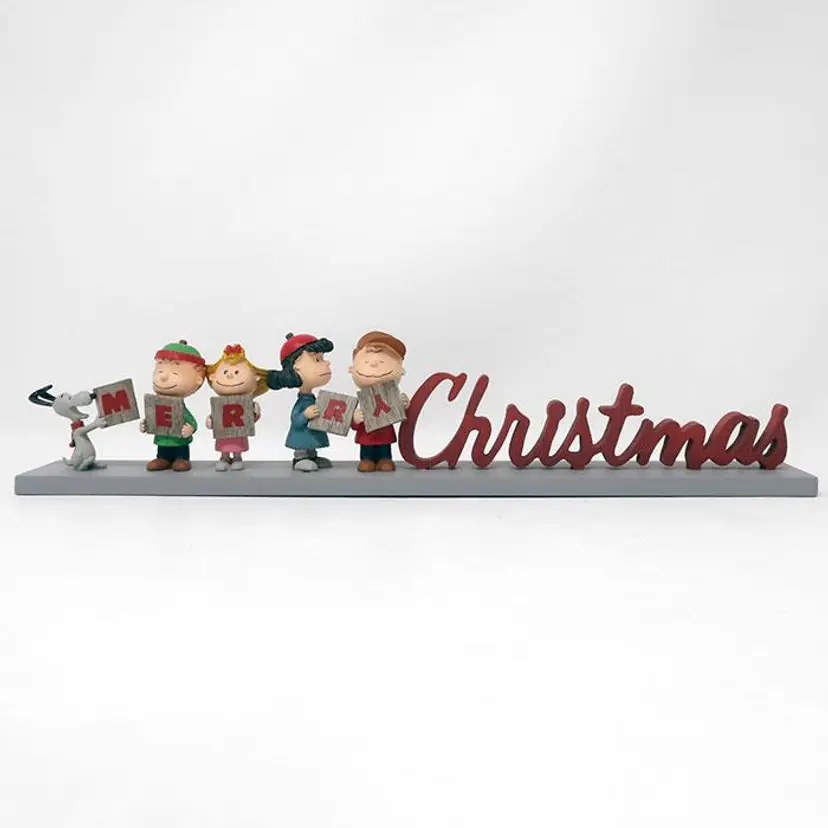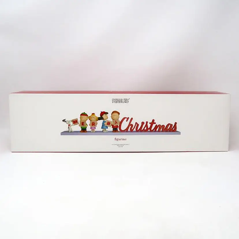Celebrate the holidays with this delightful Peanuts Christmas figurine featuring Snoopy, Charlie Brown, Lucy, Linus and Sally holding a "MERRY" sign next to "Christmas". Perfect for adding a festive touch to your collection, this charming 16" display captures the joyful spirit of the Peanuts gang. A must-have for any fan's holiday decor! Made by Hallmark and comes in the original box.