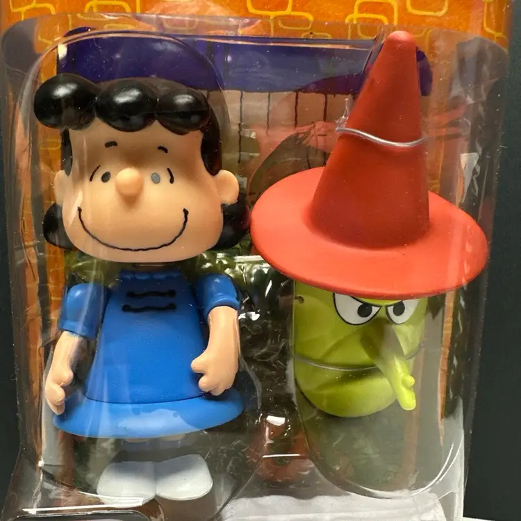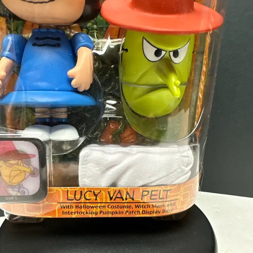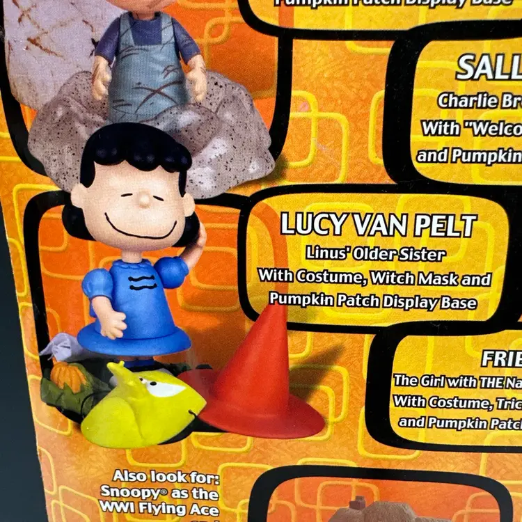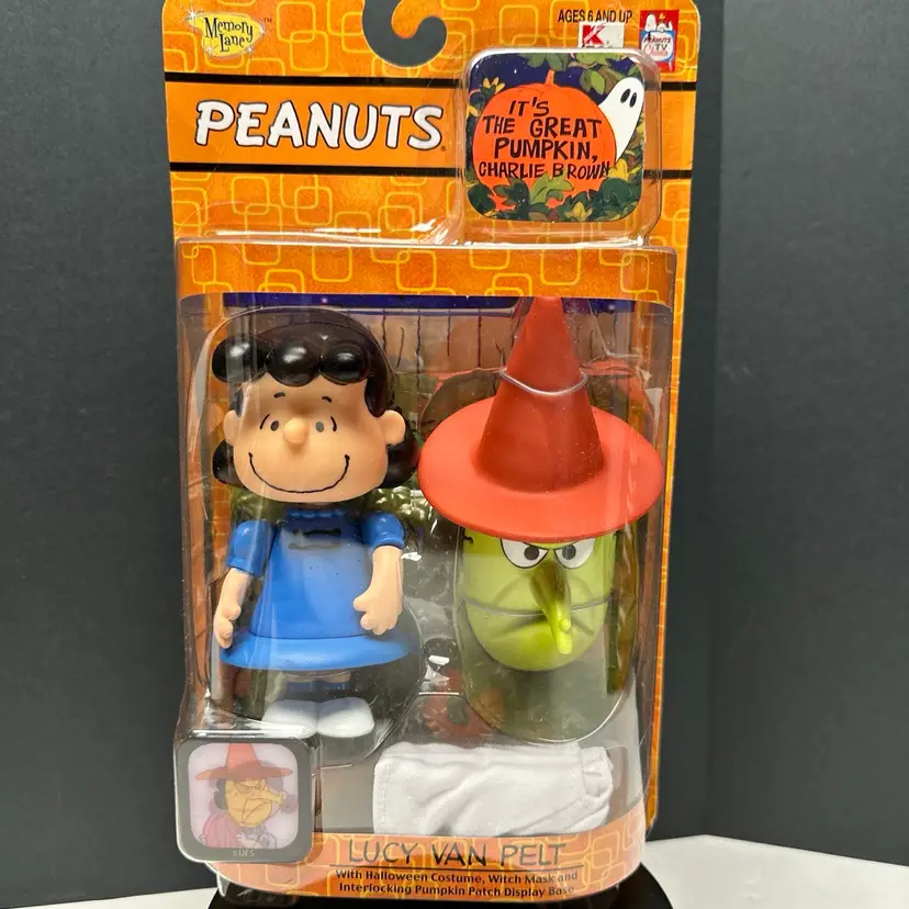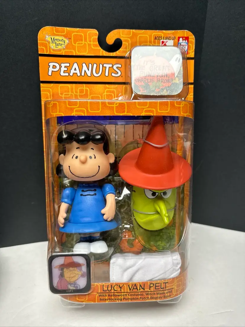 New in box. Box is in very good condition with some minor issues. Please see pictures. Include Lucy figure, costume, witch mask and Pumpkin patch display case.