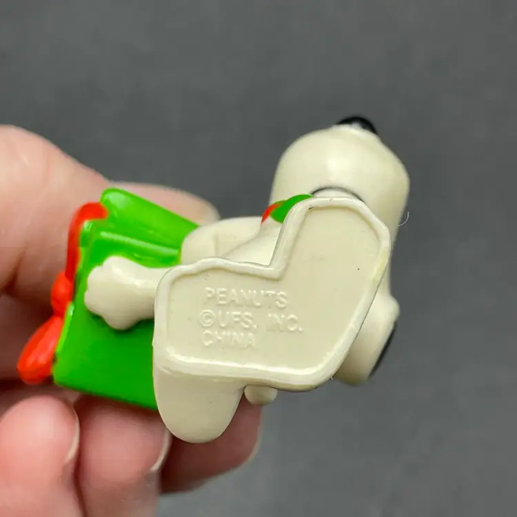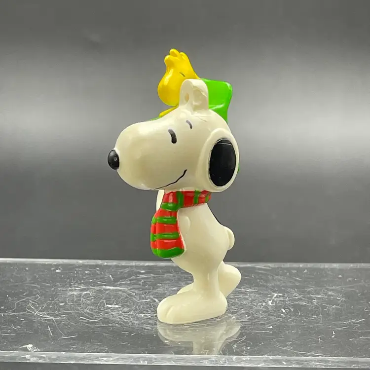This is a vintage Peanuts Snoopy and Woodstock hanging Christmas ornament. Whitman's Candy included these ornaments in their boxes of chocolates starting in the 1990s. Made of PVC. Measures approximately 2.5" tall.