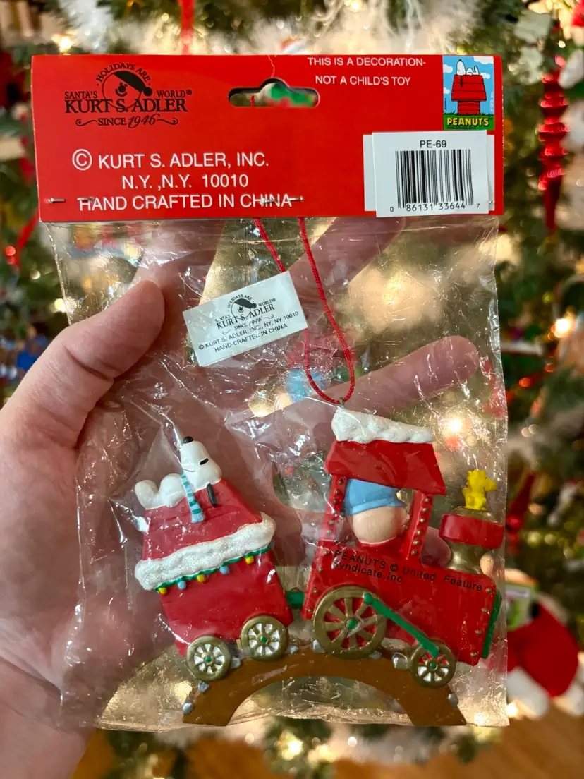 This is a super cute train ornament from Kurt Adler. Features Charlie Brown, Snoopy, and Woodstock. New in package. Add this ornament to your collection today!