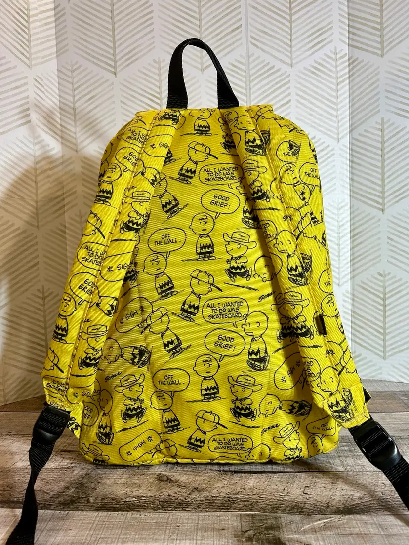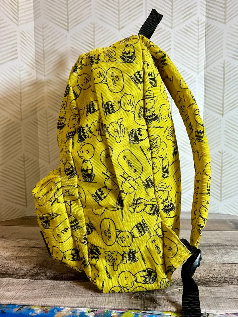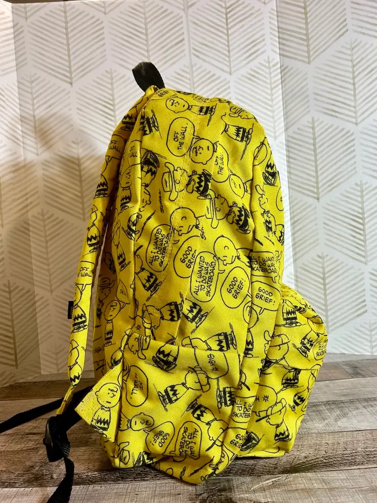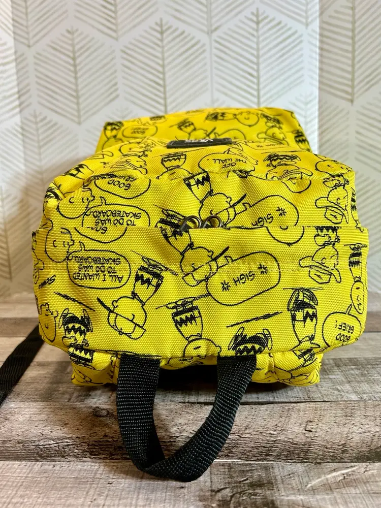 Charlie Brown meets Vans brand in this full size yellow and black backpack. Like new condition. Front zipper pocket has an added zipper pocket and slide in pockets inside. The inside large compartment is big enough for all things school, playtime, and/or sleepover time. Back to school will be here before we know it so, if you have someone that loves Charlie Brown & Vans go ahead and surprise them with this gem!