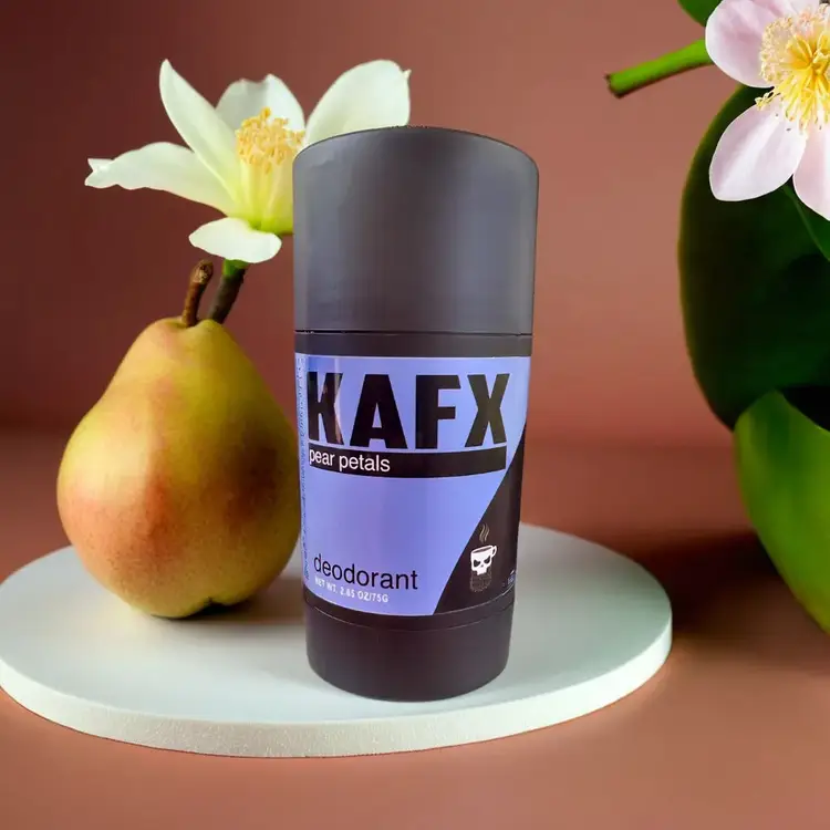 PEAR PETALS - COFFEE INFUSED NATURAL DEODORANT SMELLS LIKE: sweet pear and floral scent with a touch of amber for a clean fresh smell that will last all day. CONTAINS ZERO: ALUMINUM, PARABENS, PHTHALATES, SULFATES, OR DYES Introducing our revolutionary coffee-infused natural deodorant, meticulously crafted to provide unparalleled odor control while prioritizing your health and wellness. What sets our deodorant apart is the transformative power of coffee oil, an exceptional ingredient known for its remarkable ability to eliminate body odor without relying on harmful chemicals. Coffee oil, with its potent antioxidant properties, not only enhances skin health by combating free radicals but also acts as a formidable odor eliminator when incorporated into our deodorant. By harnessing the benefits of this unique ingredient, we have created a deodorant that goes beyond conventional solutions, providing a truly exceptional and natural odor-controlling experience. As dedicated parents to triplet sons, we intimately understand the significance of using safe and natural products. That's why we developed this deodorant specifically for our own family. We wanted a reliable solution that would safeguard our sons' delicate skin during their active days without exposing them to harsh chemicals. Our gentle yet powerful natural deodorant effectively curbs odor throughout the day, ensuring you feel fresh and confident in any situation. Its enduring formula provides all-day protection, allowing you to embrace each moment without worries. With meticulously chosen natural ingredients and the infusion of coffee oil, our deodorant presents the ideal choice for those seeking a wholesome and efficacious alternative for odor control and skin health. Bid farewell to harmful chemicals and welcome a deodorant that genuinely cares for your skin. Embrace the transformative power of nature with our coffee-infused natural deodorant, and experience a new level of freshness and vitality. Trust us to deliver a product that not only meets your expectations but exceeds them, revolutionizing your daily routine with the power of natural ingredients. INGREDIENTS: organic arrowroot powder, coffee infused coconut oil,organic coconut oil, organic beeswax, organic shea butter, cornstarch, magnesium hydroxide powder, fragrance oil HOW TO USE: Remove cap, twist bottom, and apply 2-3 swipes to armpits or anywhere the body that you are looking to decrease body odor. Use daily for you and everyone around you. Our deodorant can withstand outside temperature of up to 90 degrees. If you live in an area that exceeds this temperature, your deodorant that may arrive melted. If that happens, place the deodorant in the refrigerator until it solidifies.