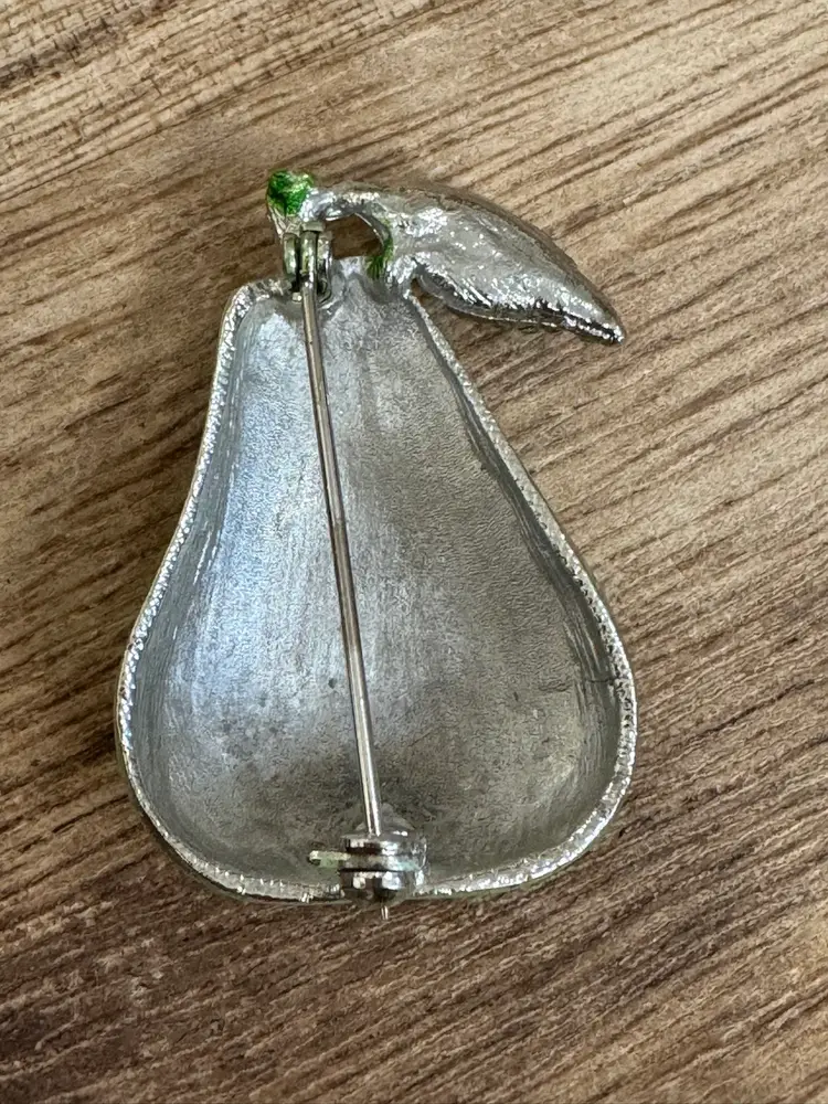 Green Pear with Clear Rhinestones Vintage Brooch 1.5” length 1” Wide