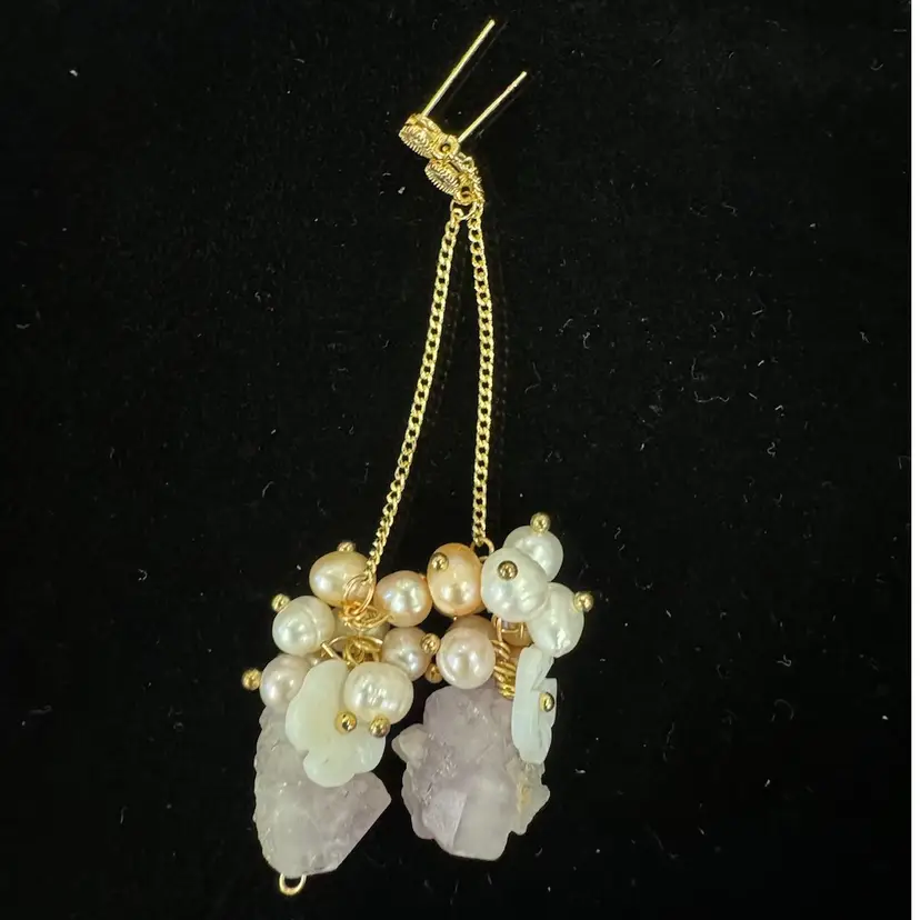 Vintage; Real freshwater pearls, with natural amethyst; stealing silver; hand made; great gifts for girls