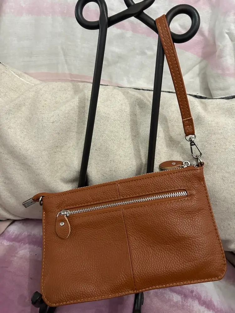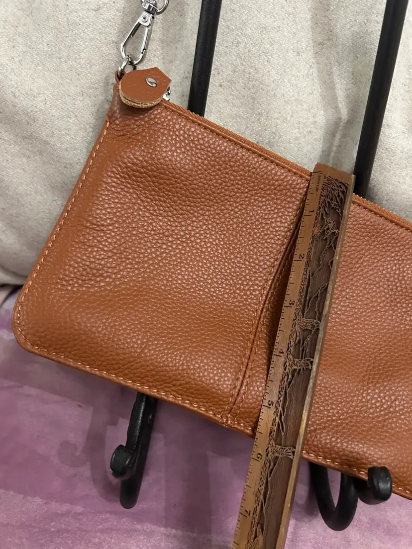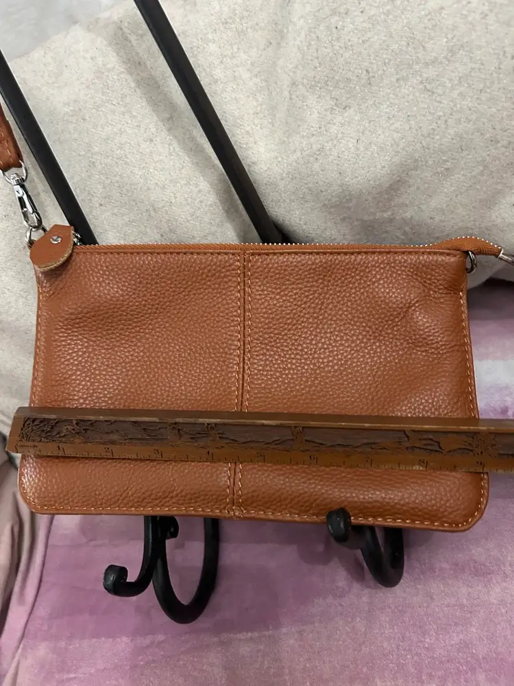 Nice leather grab and go purse measures approximately 9” x 5.5” Befen is known for quality and this bag shows it.