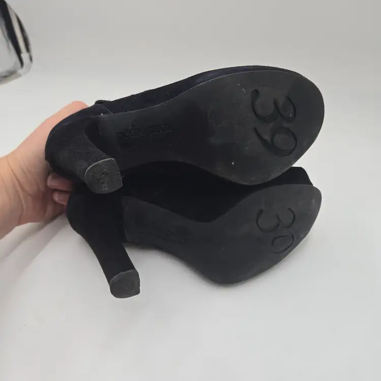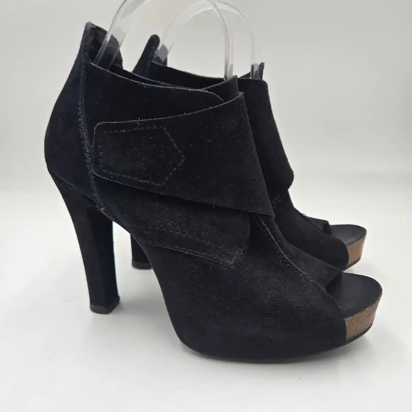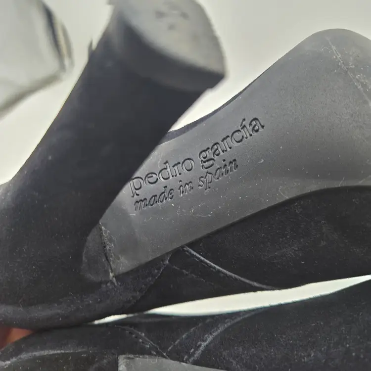 Pedro Garcia Women's Chenoa Bootie Pump Sz 39 8.5 High Heel Open Toe Black Suede