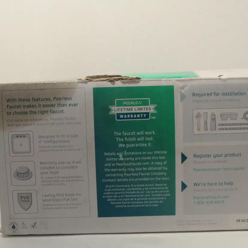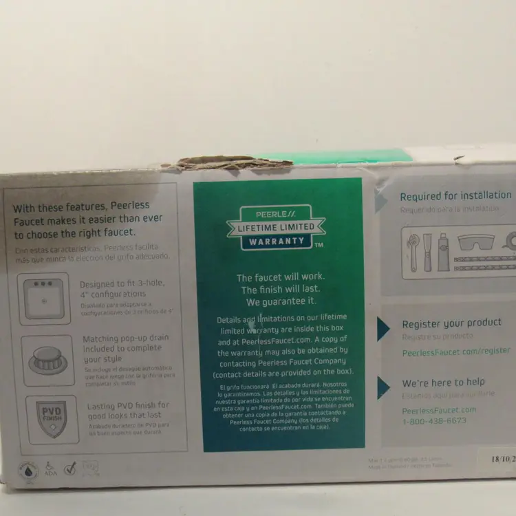 *New -Open Box - Items are Factory Sealed *Original Box is included. Consists of faucet, item parts, and Instructions. Areas of the box is stained.