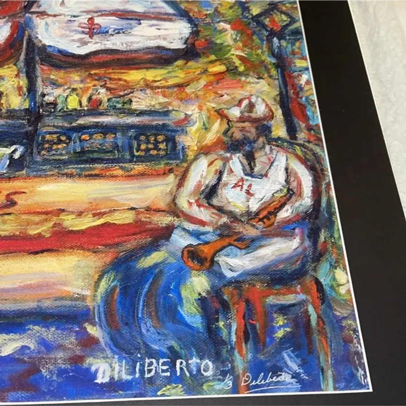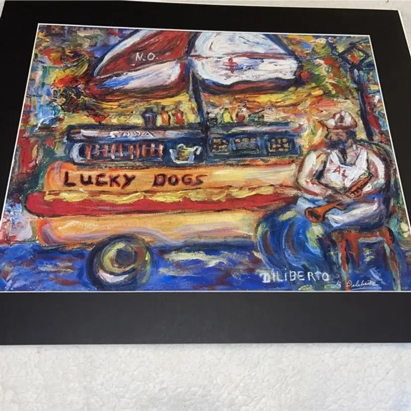 This one features the lucky dogs, hot dog, horn musician It is signed by the artist and it has one of three.