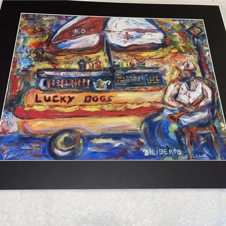 Peggy Diliberto Signed Art Poster New Orleans 24 x20 Matted Blue Dog