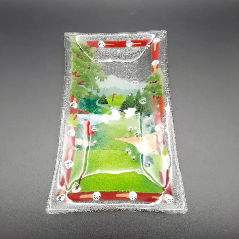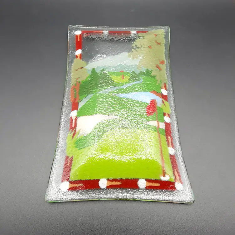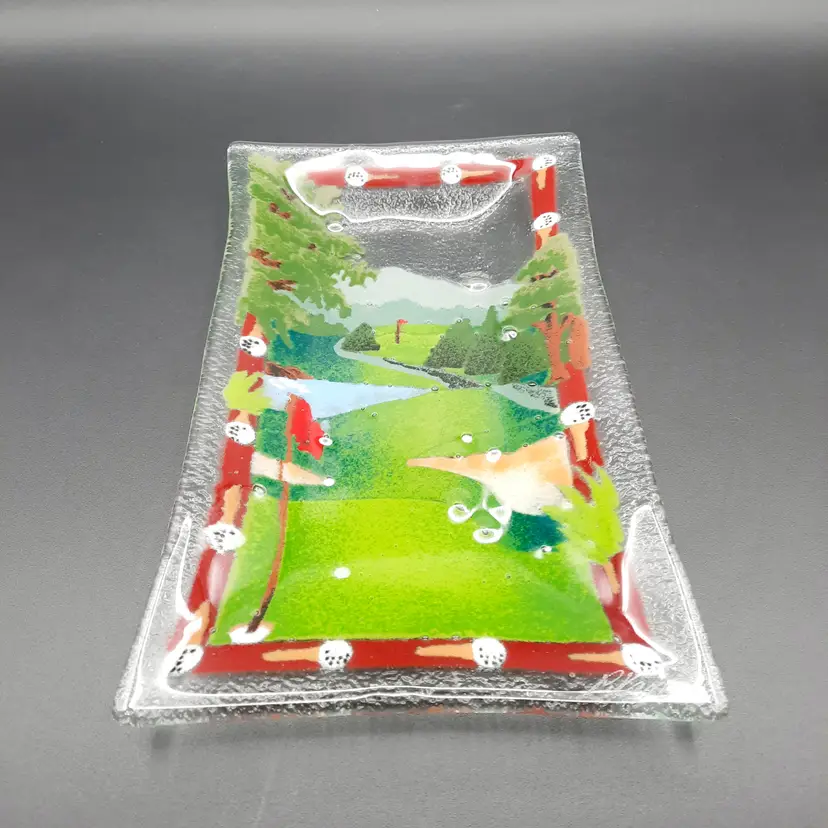 Peggy Karr Fused Glass Signed Golf Plate Tray