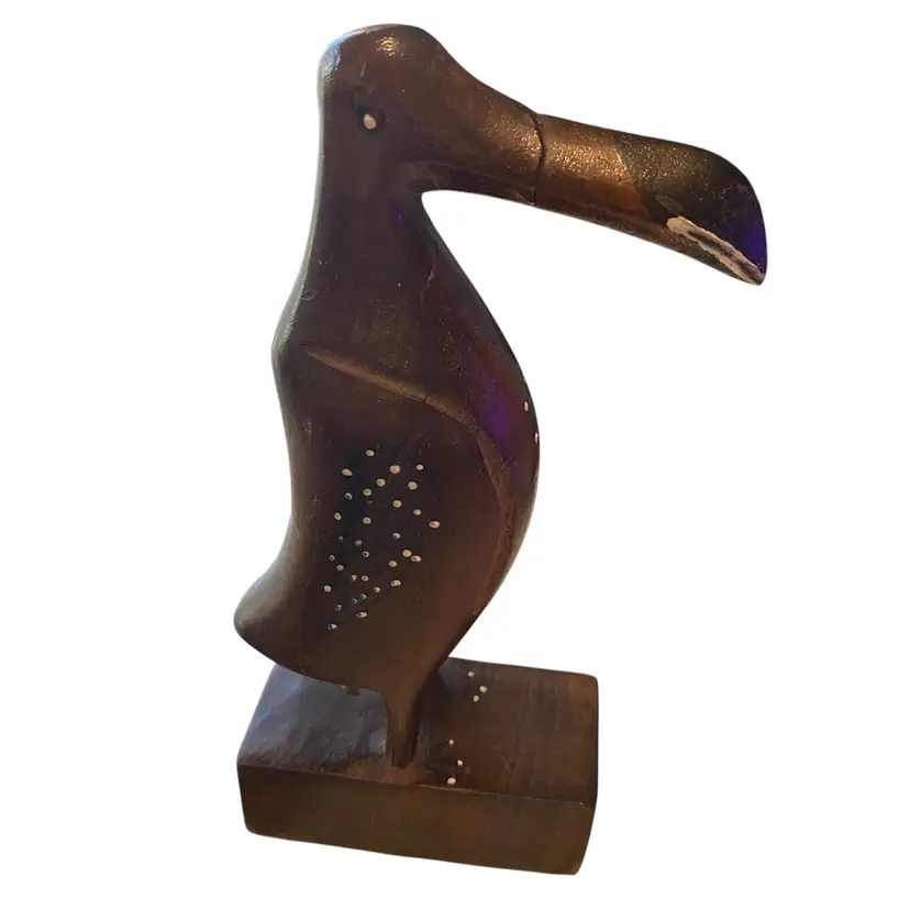 PELICAN Toucan FIGURINE, WOOD CARVING 6.25in tall hand painted