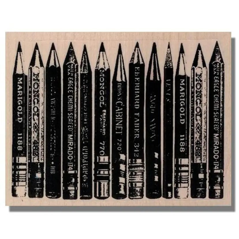 Pencils Rubber Stamp Size: 4 x 3 Wood Mounted - Pink Rubber Handmade Brand new/unused • Great for creating backgrounds, junk journals, mixed media projects, collage, card making and tags. • First purchase on District? Use this code for $5 off a $10 min purchase. ALOHAG34