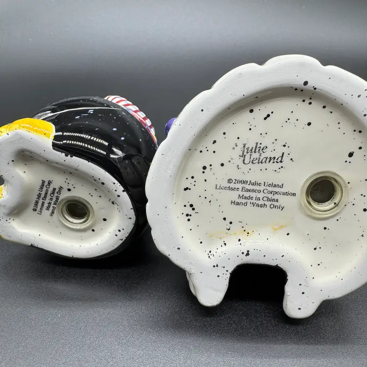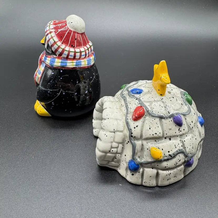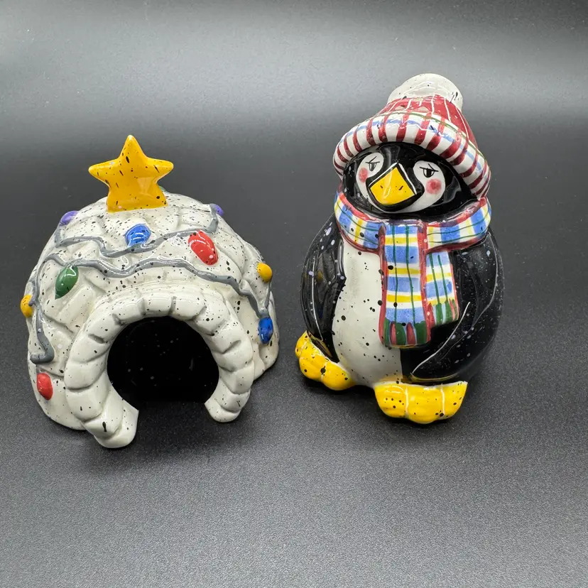 Vintage Penguin and Igloo Salt & Pepper Ceramic Shakers by Julie Ueland Retired - dates back from the year 2000. 251 grams In very nice preowned condition - no chips no cracks