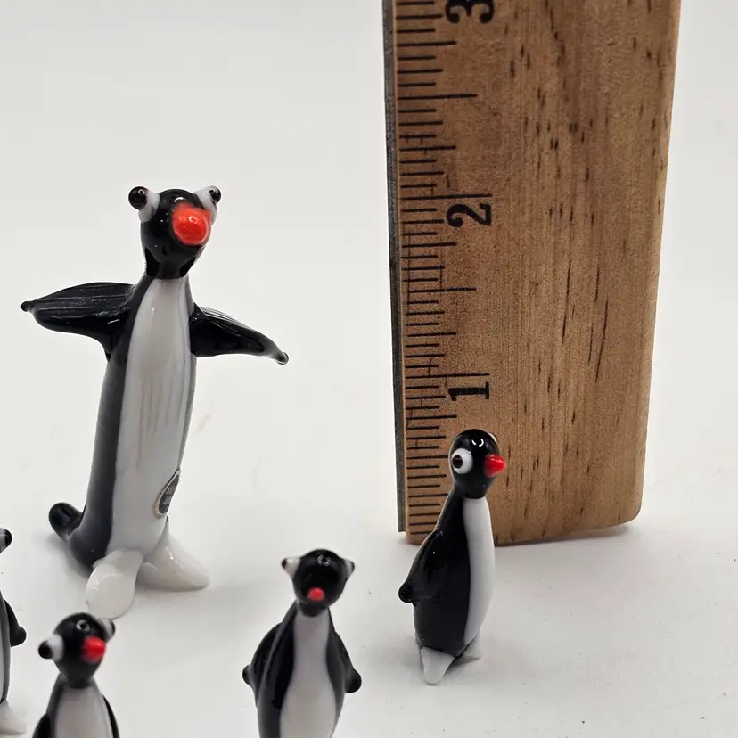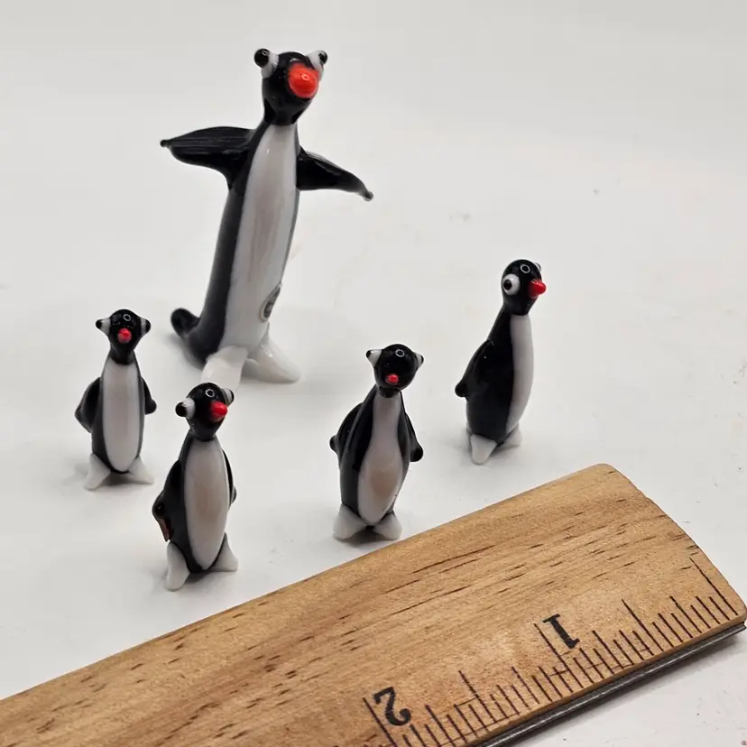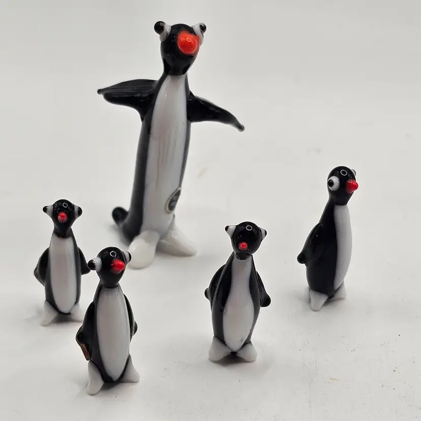 Penguin miniature Figurines vintage Japan set of 5 Handblown Glass