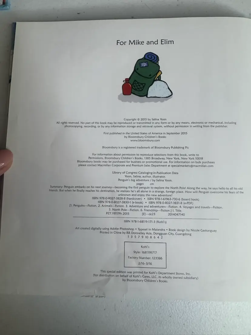 Penguin’s Big Adventure By Salina Yoon, A Kohl’s Care Book Hard Cover Vintage 2015