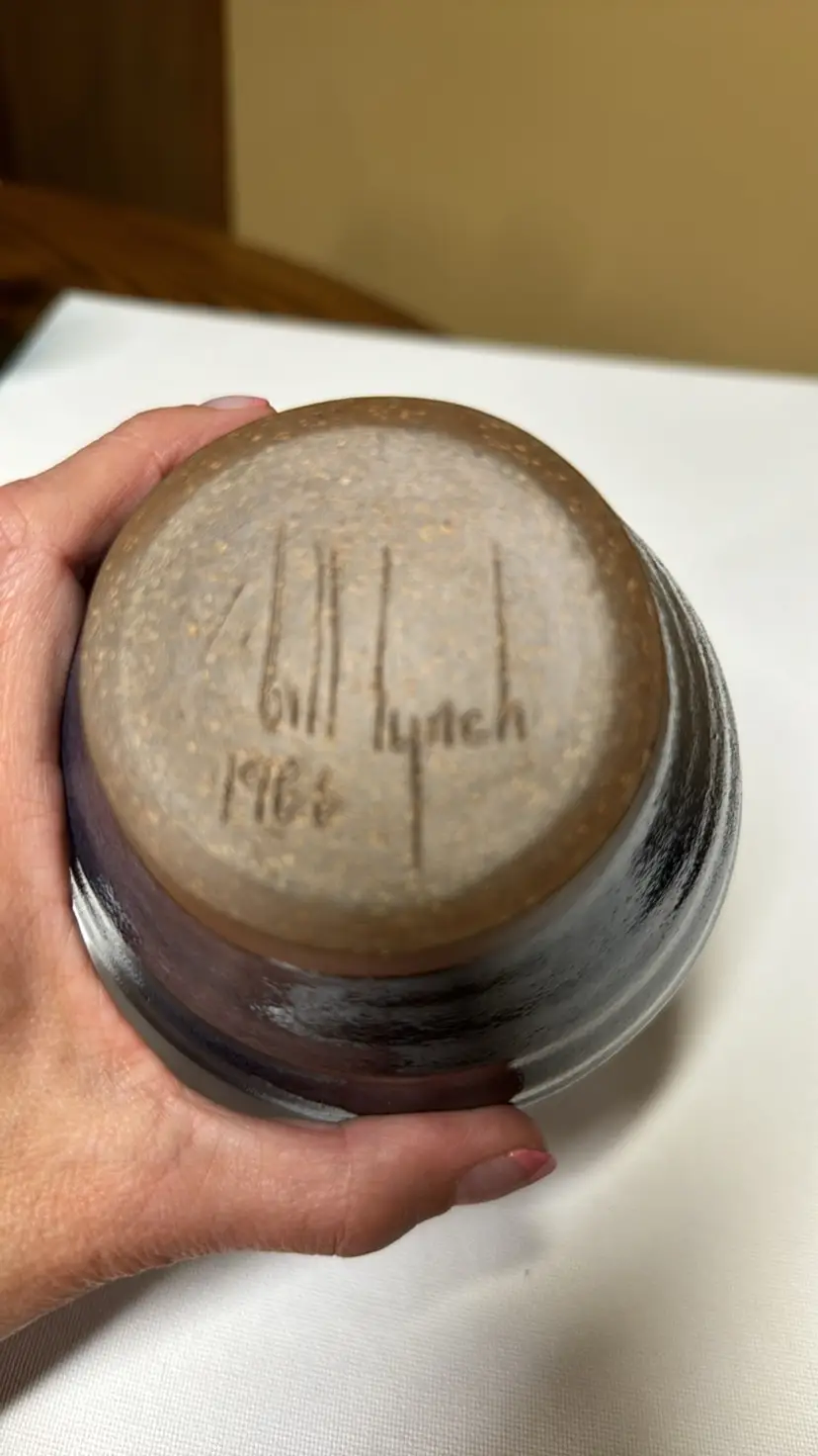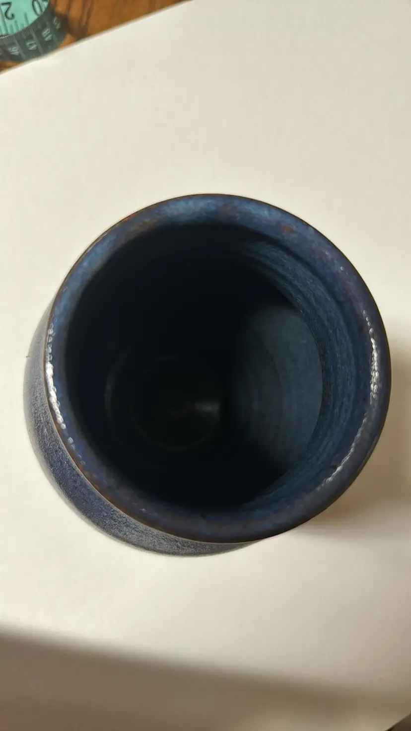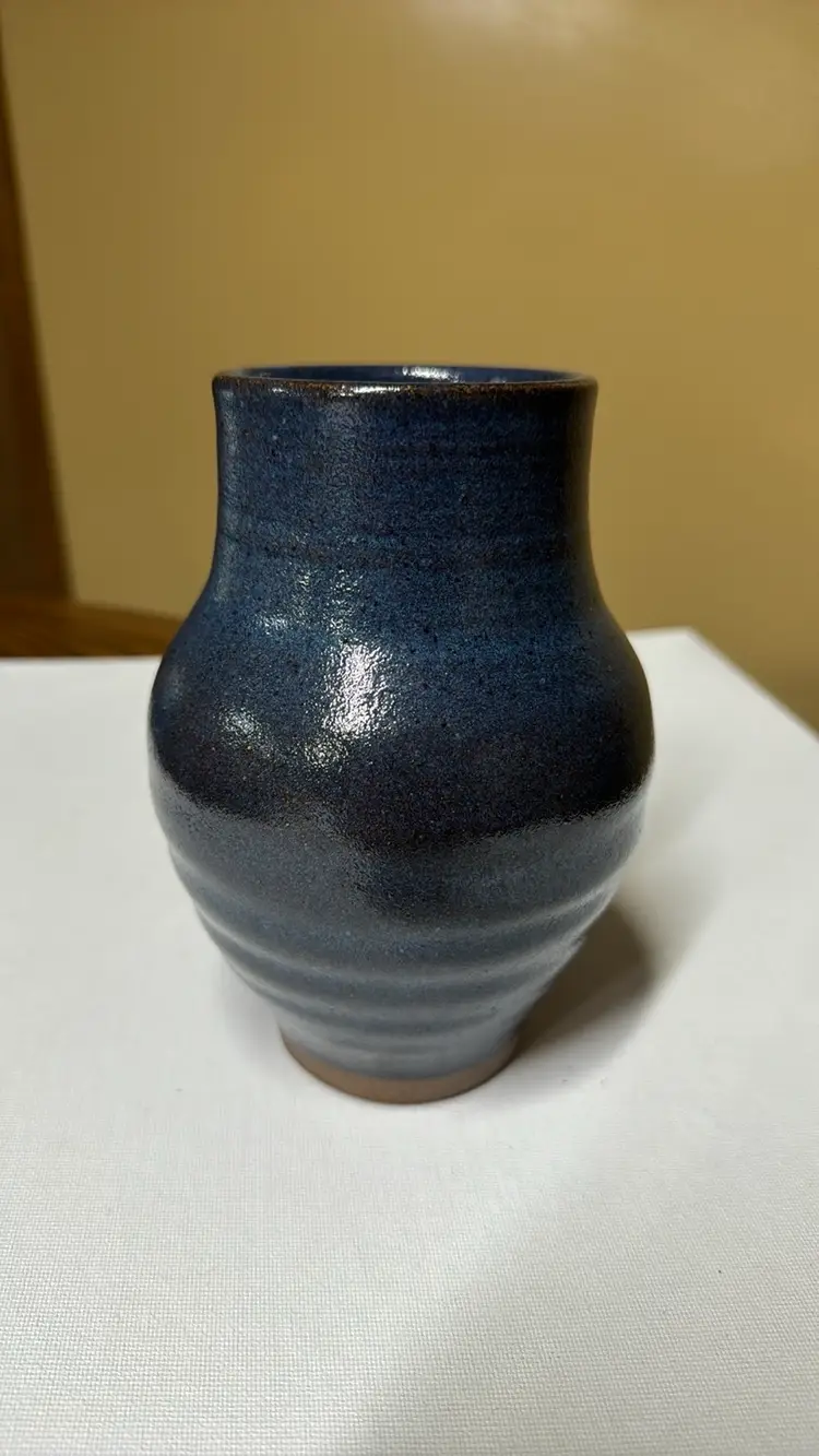 Penns Creek Art Pottery Vase signed Bill Lynch 1986 Mifflinburg, PA 6.75” tall Beautiful blue glaze No breaks or chips, looks new (31529248)
