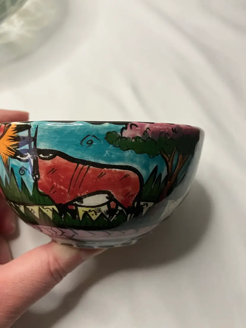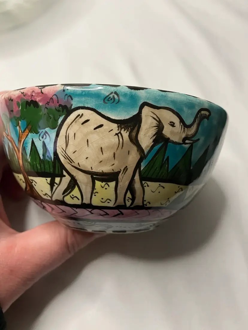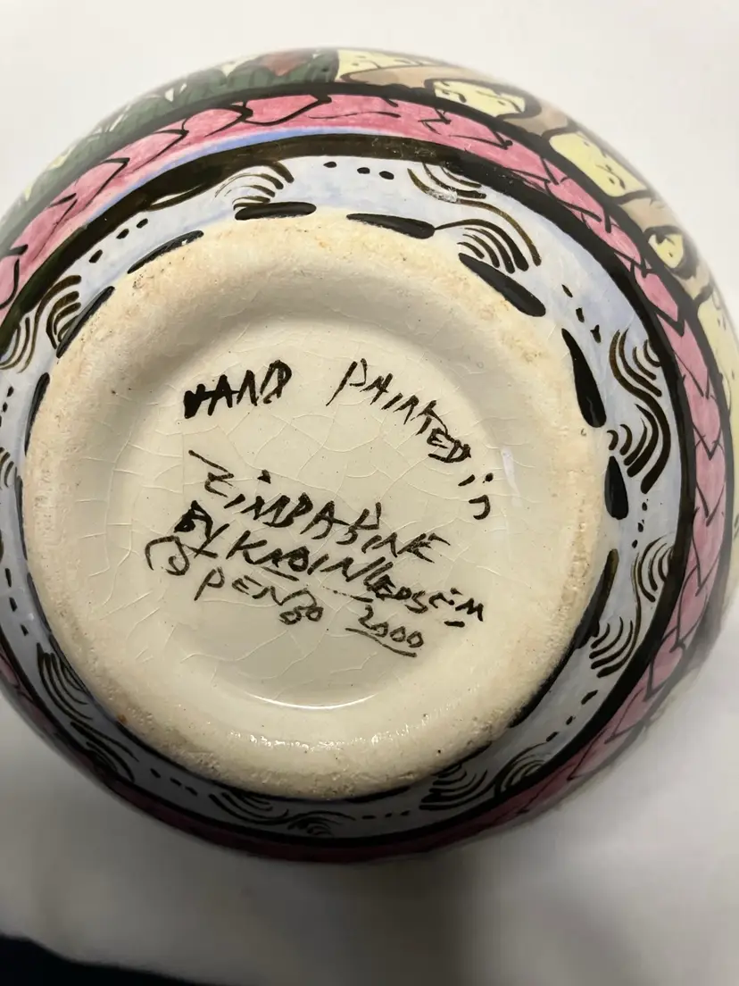 SIGNED Original PENZO African Hand Painted Zimbabwe Safari Splendor Small Bowl.