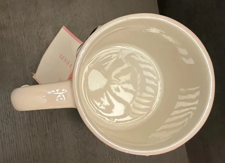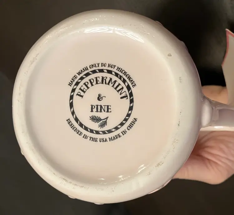 Not chips or cracks.The glaze is shiny! Measures 6" in diameter,including the handle and 4" in diameter without. 4 1/2" tall. Minor wear on bottom where it sits on a table.