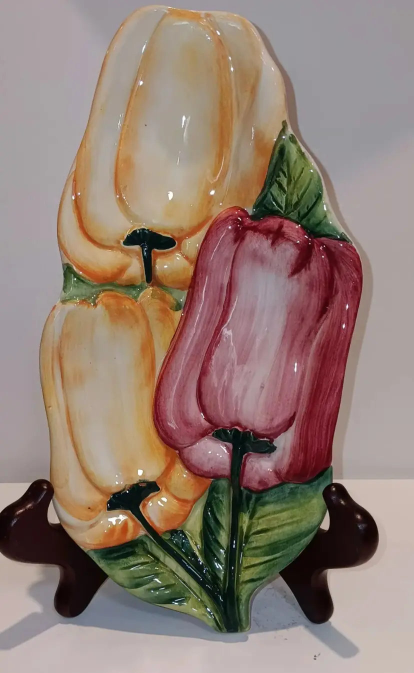Cute spoon rest with peppers design. Excellent condition no chips or cracks. Measuring b.5" long and 4.5" wide. Made in Italy