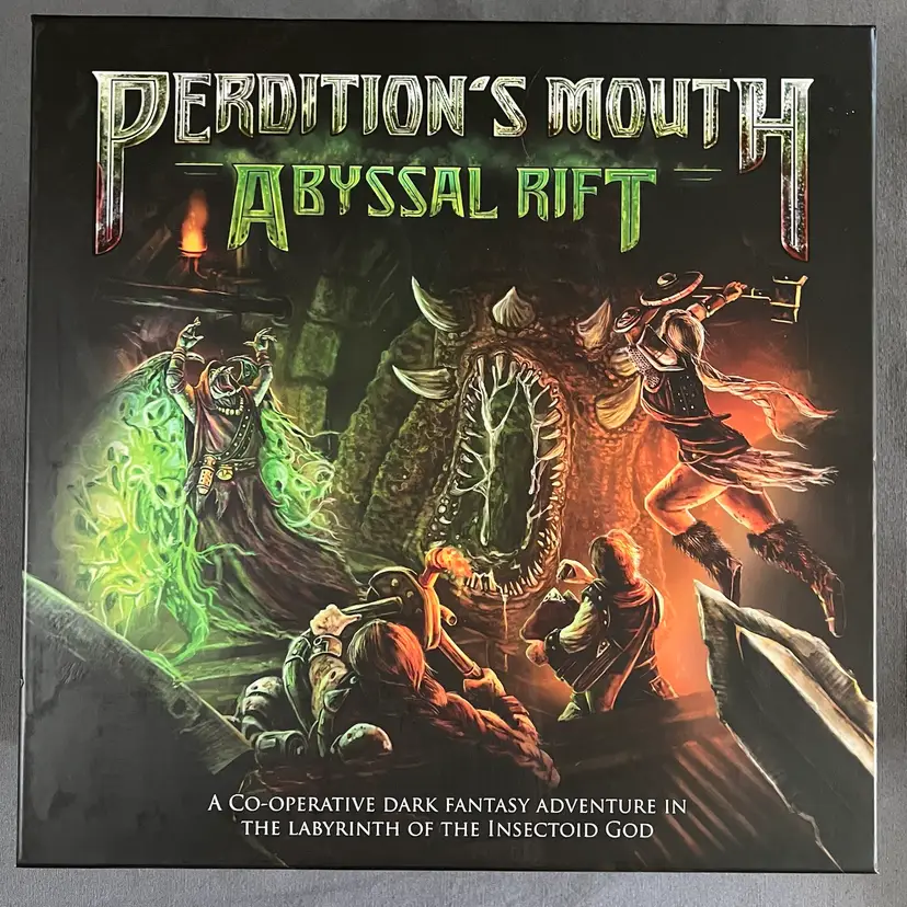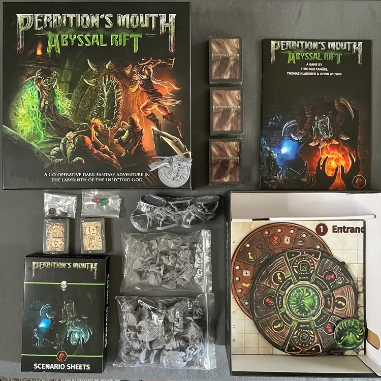 Perdition’s Mouth is designed to be played as a story-supported campaign over several gaming sessions. In the campaign, you have to fight through at least six increasingly challenging scenarios and the level of success during each adventure has a direct effect on the rest of the story. Can you survive the labyrinth of the insectoid god? - BGG
