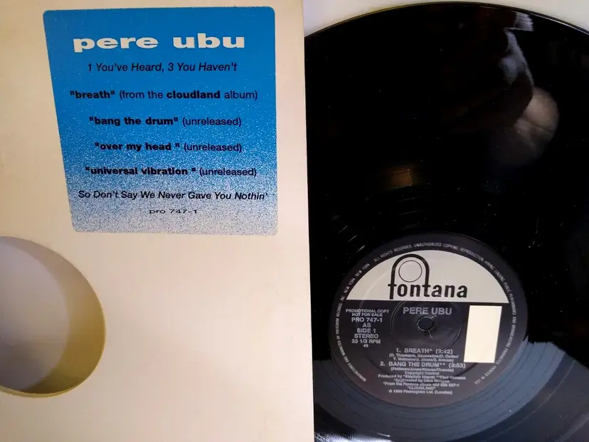 Artist: Pere Ubu Speed: 33 RPM Record Label: Fontana Release Title: Breath Case Type: Cardboard Sleeve Custom Bundle: No Color: Black Material: Vinyl Inlay Condition: Excellent (EX) Modified Item: No Edition: Promo California Prop 65 Warning: No Type: EP Format: Record Record Grading: Near Mint (NM or M-) Language: English Release Year: 1989 Sleeve Grading: Excellent (EX) Record Size: 12" Style: Art Rock Features: Original Cover Genre: Rock Country/Region of Manufacture: United States Number of Audio Channels: Stereo