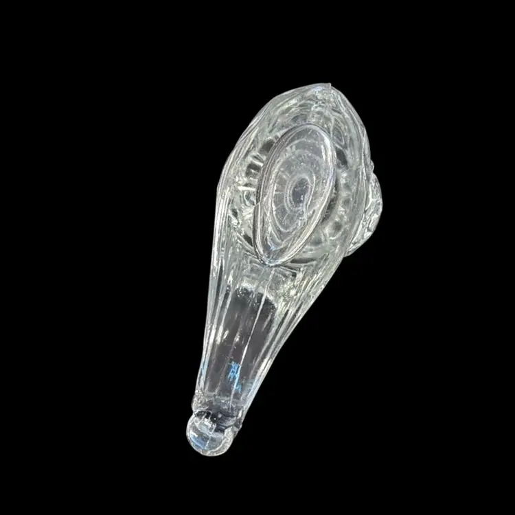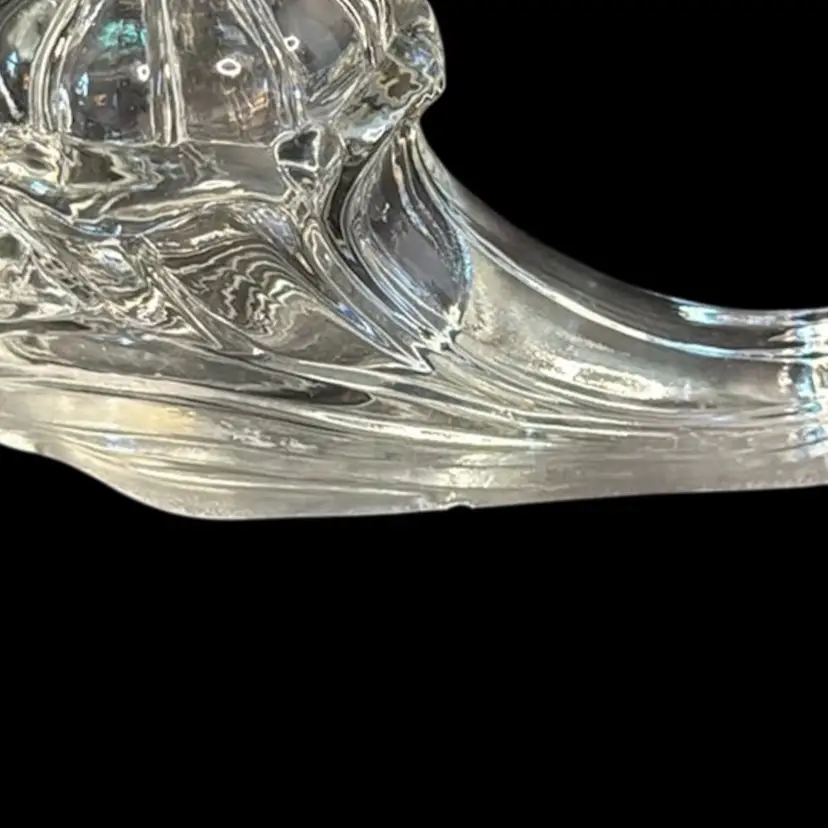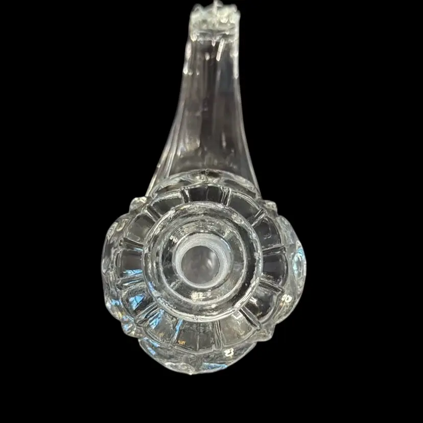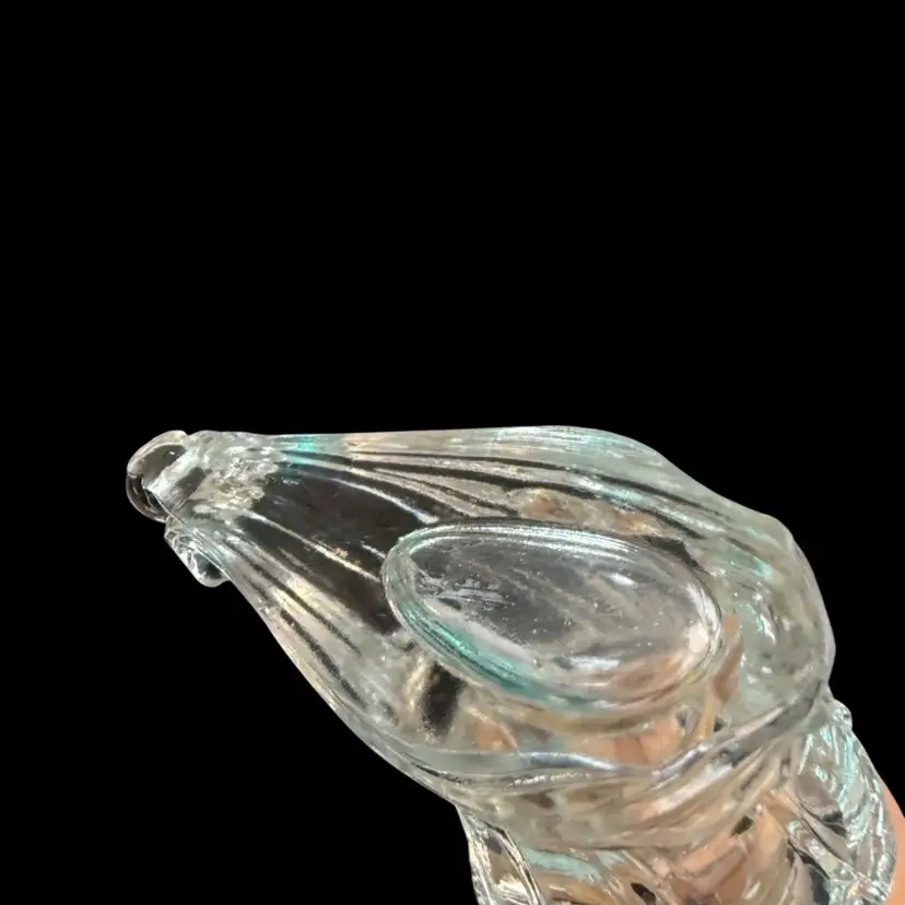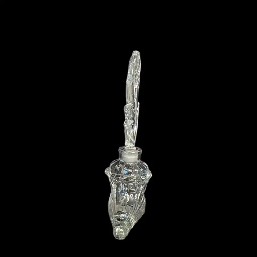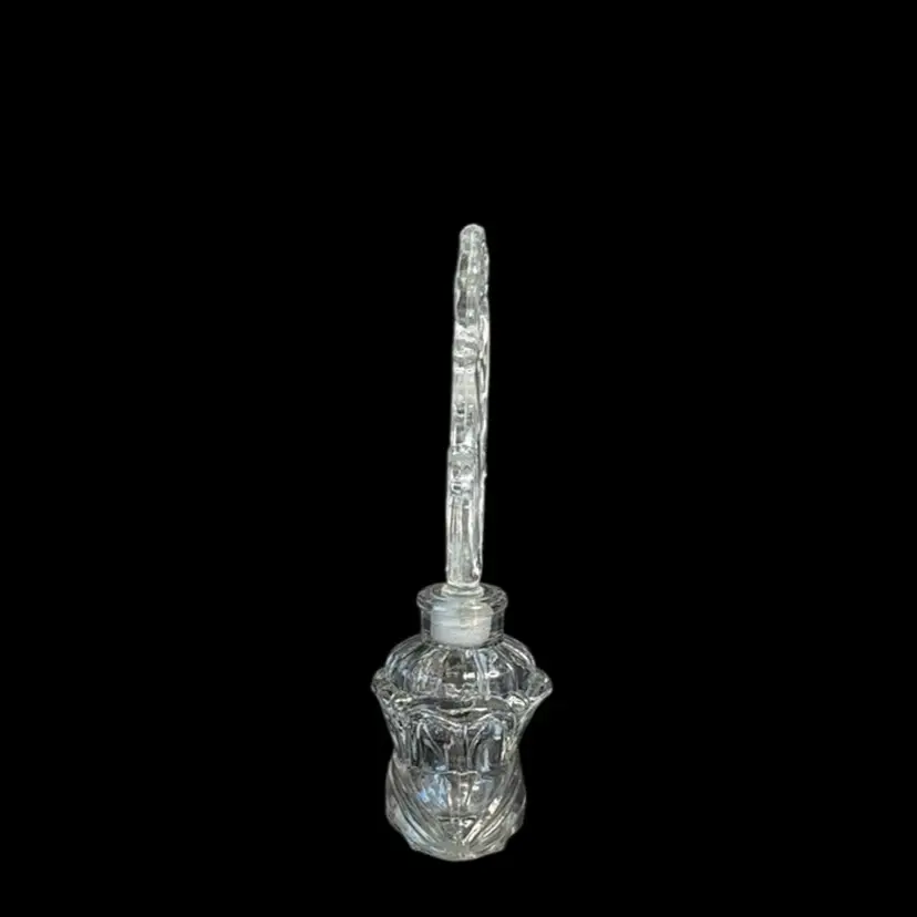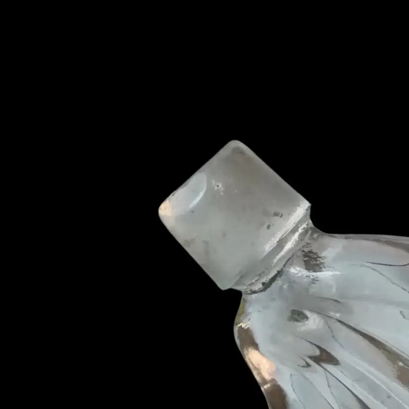 Pressed glass cornucopia perfume bottle with flower stopper.