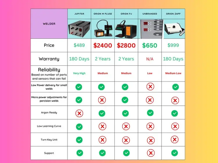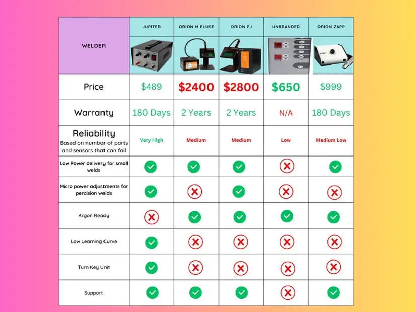 • not a lot of moving parts or sensors will start glitching under heat (which Orion and unbranded welder will).