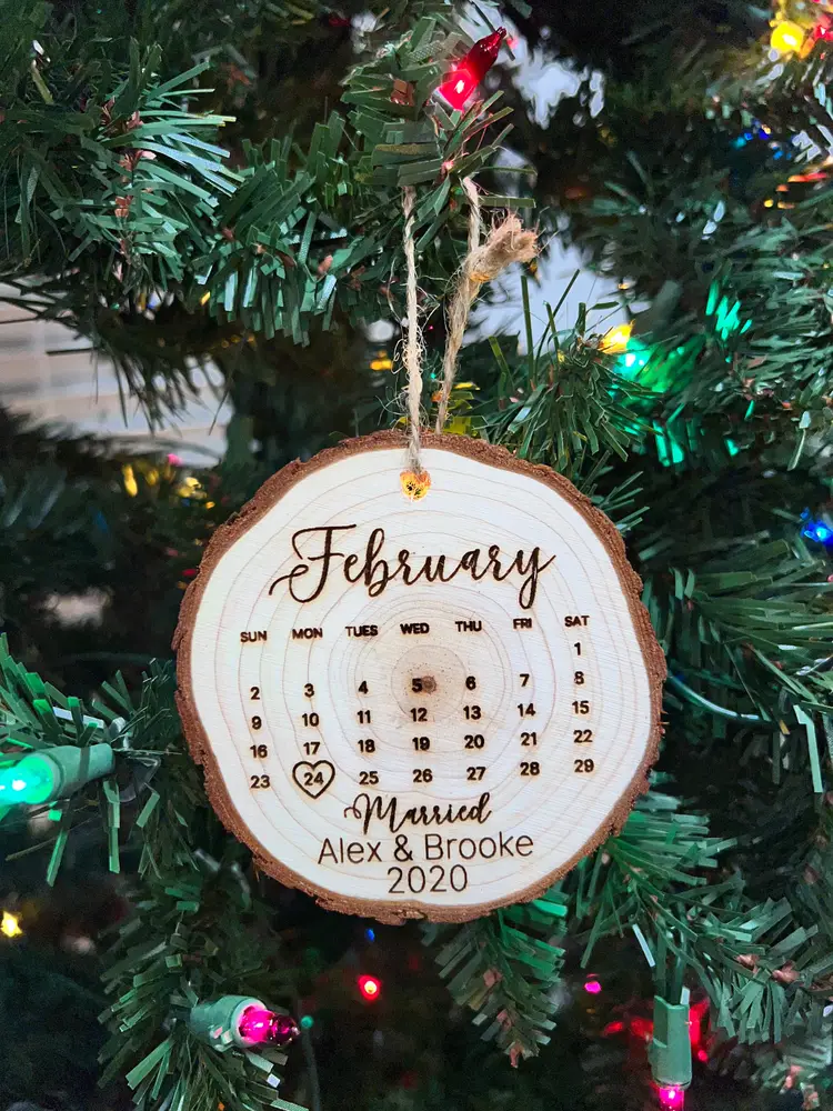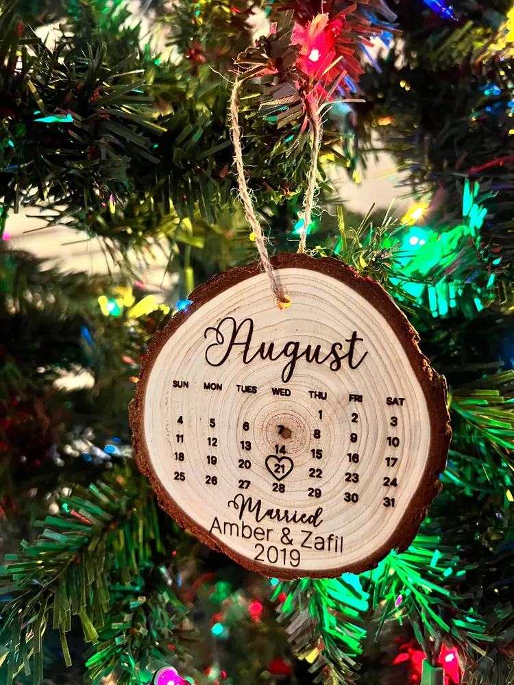 Date ornaments are a great gift to celebrate a special date. They can be used as stocking tags with personalized names engraved to each round wood. If you have something in mind, please do not hesitate to reach out for customizations.