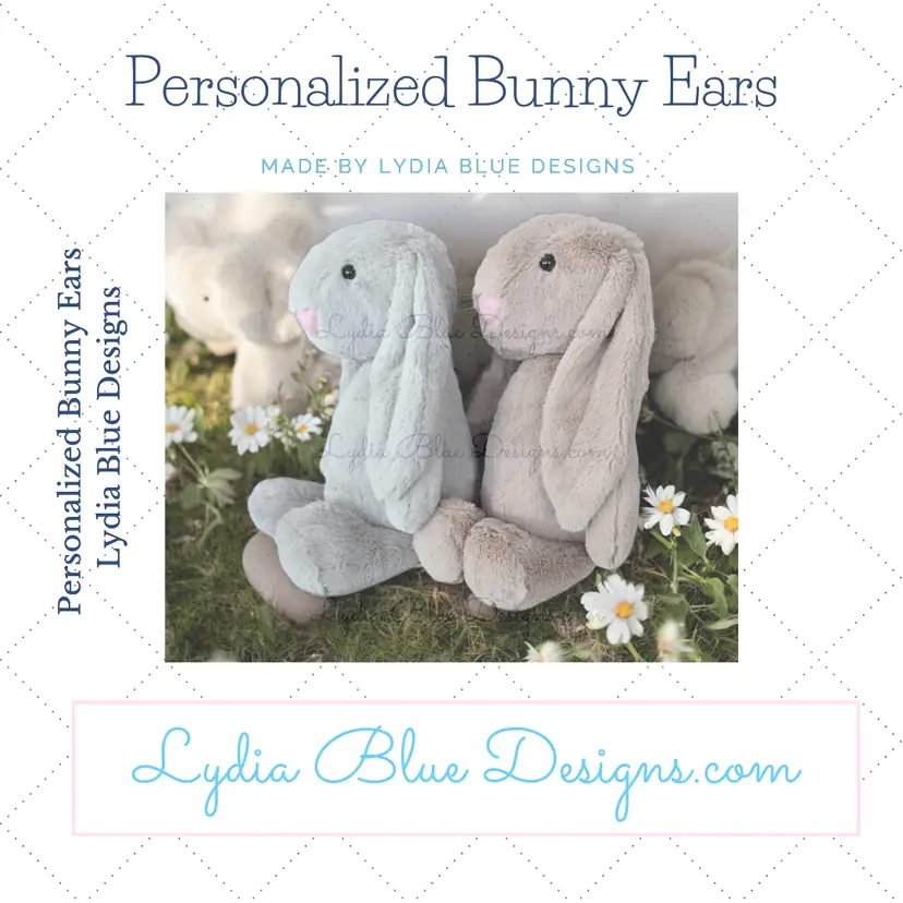 Each bunny is custom embroidered to order by Lydia Blue Designs. Because each item is personalized, embroidery placement and thread colors may vary slightly, making every bunny unique.
