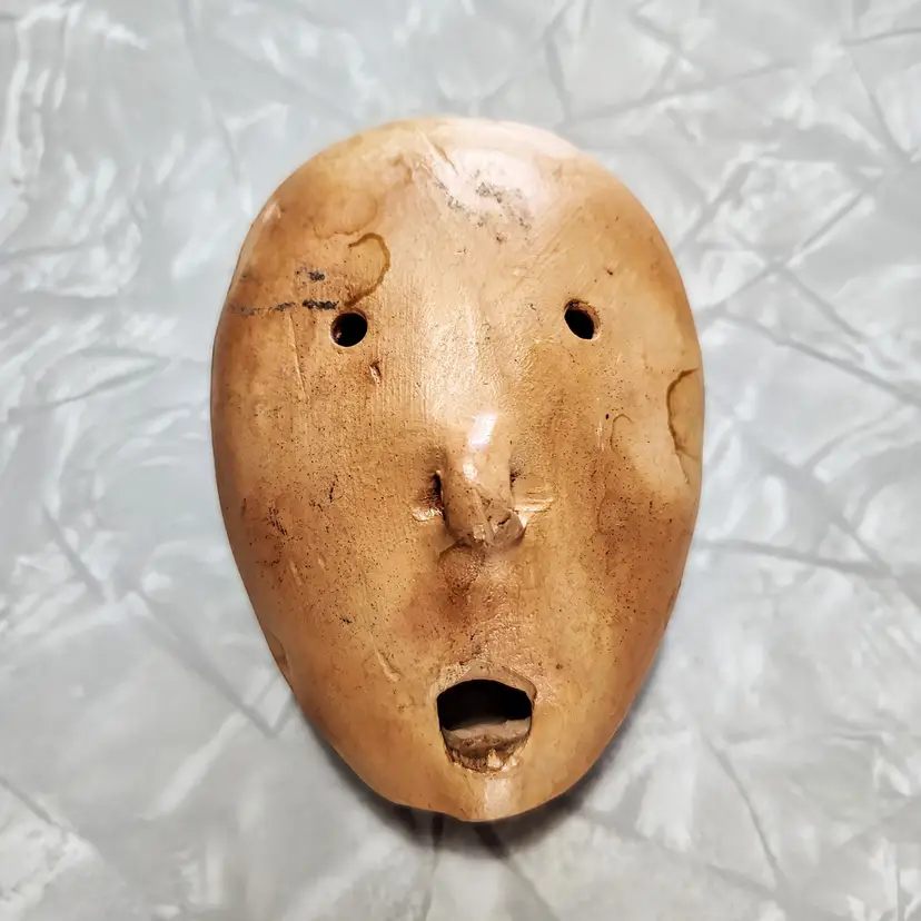 Six finger holes on the top and two on the bottom Plays nicely The fact that the bottom looks like a face makes this even more fun. Approximately 3-1/2" long x 2-3/4" wide Undamaged.