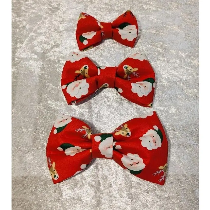 Available in 3 sizes - Small, Medium, or Large. Sizes are approximate. There is a size chart attached in the photos that shows the size of the bow and the width of the collar it can be attached to.