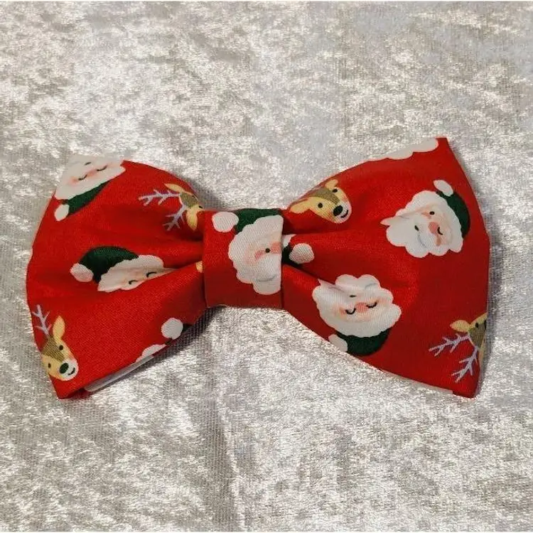 Dress up your pet with these adorable handmade (by me) Bow Ties. Just slide their collar through the two attached elastic strips to secure as shown in the sample picture.
