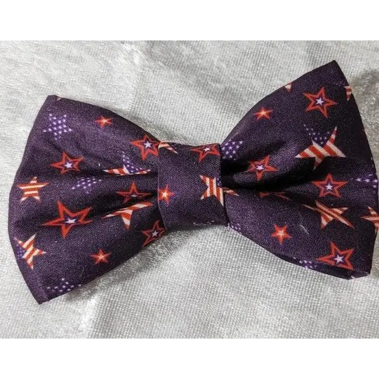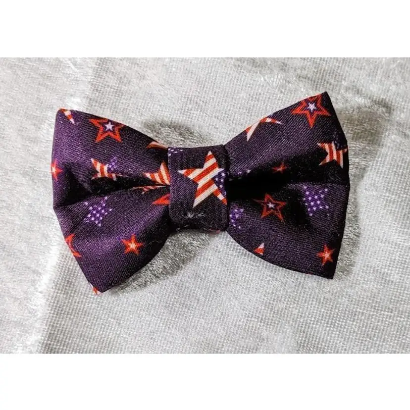 Dress up your pet with these adorable handmade (by me) Bow Ties. Just slide their collar through the two attached elastic strips to secure as shown in the sample picture. Because these are handmade, patterns placements & color may vary slightly from picture shown.