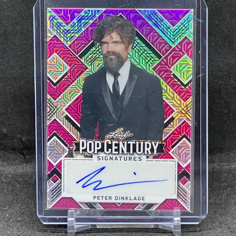 Add this Peter Dinklage autograph card from the Leaf Pop Century Signatures series to your collection. Perfect for fans of his iconic roles and TV memorabilia enthusiasts!