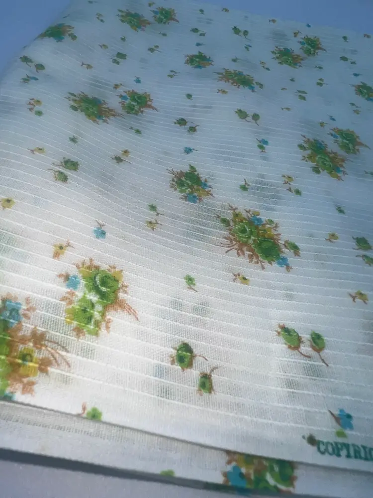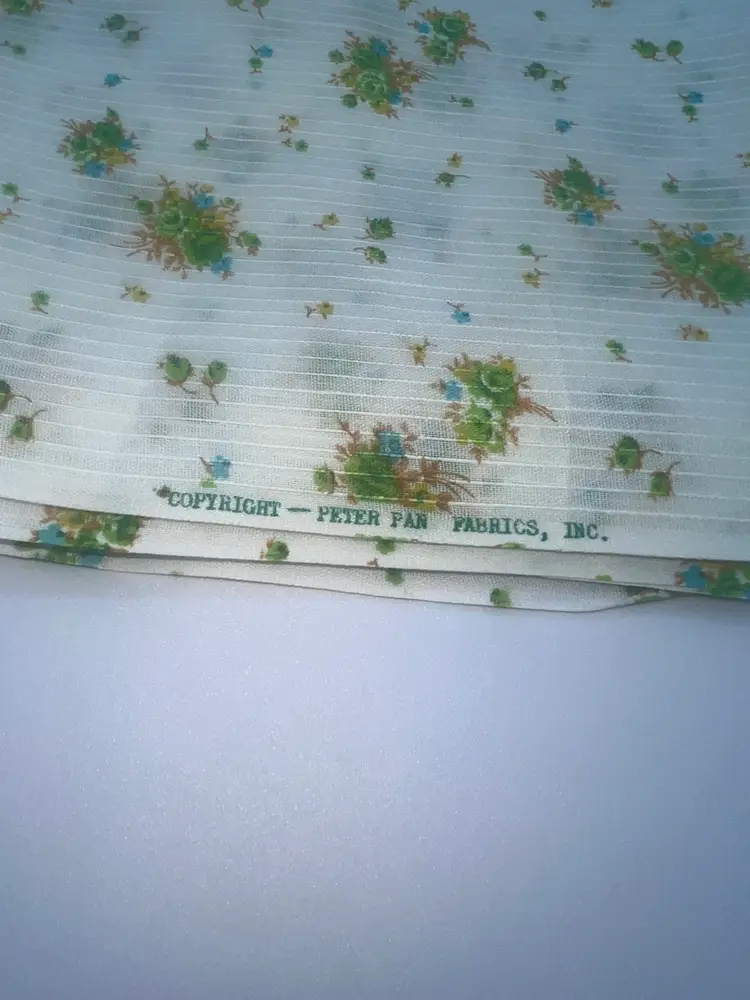 A lovely floral dimity fabric Peter Pan is the marked maker Please feel free to ask any questions Thank you for your time Blessings, Bonnie & Darren :-)