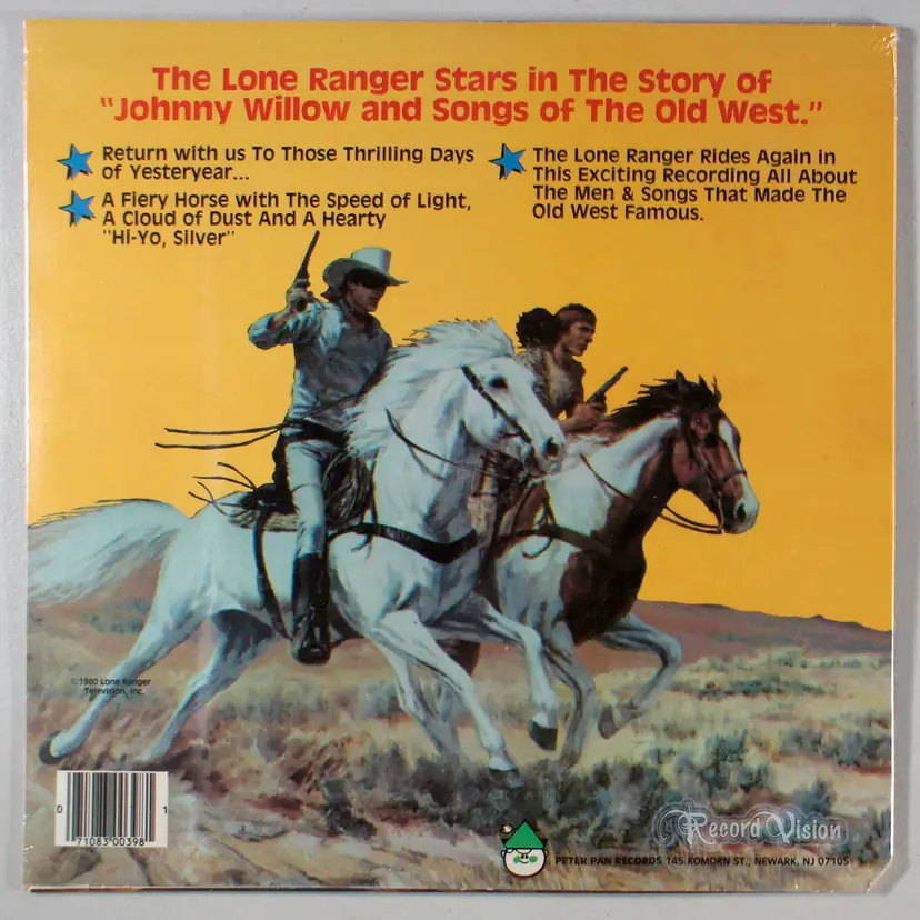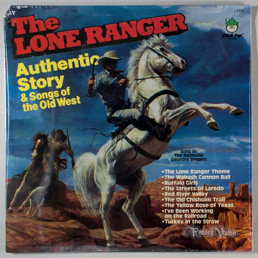 The Lone Ranger: Story and Songs of the Old West, by Peter Pan Records, features themed songs performed by The Nashville Country Singers. The Lone Ranger is a fictional masked former Texas Ranger who fought outlaws in the American Old West with his Native American friend, Tonto. The character has been called an enduring icon of American culture.