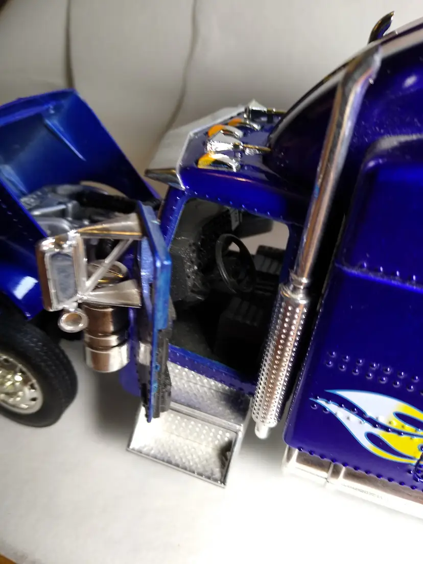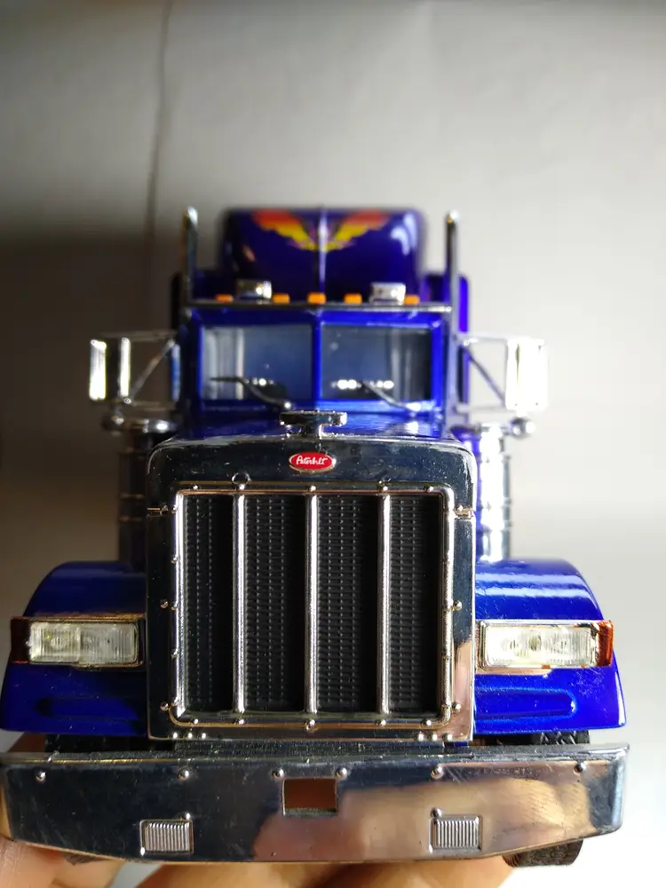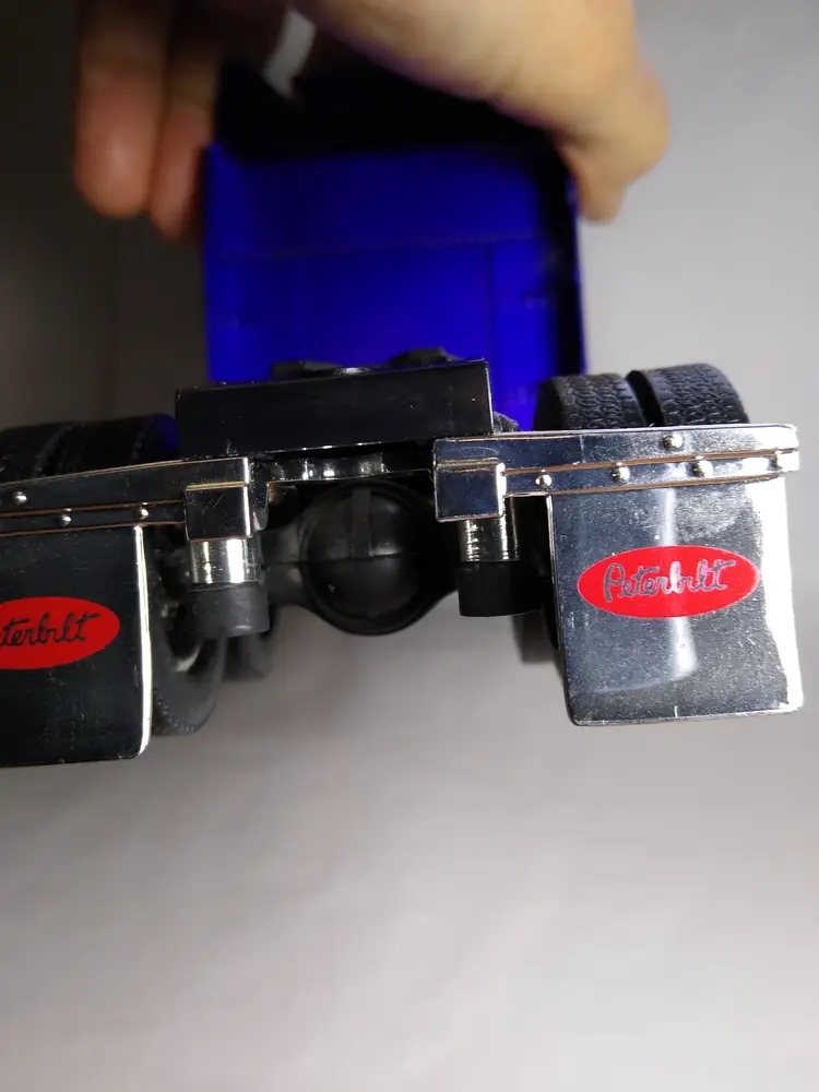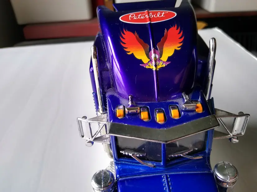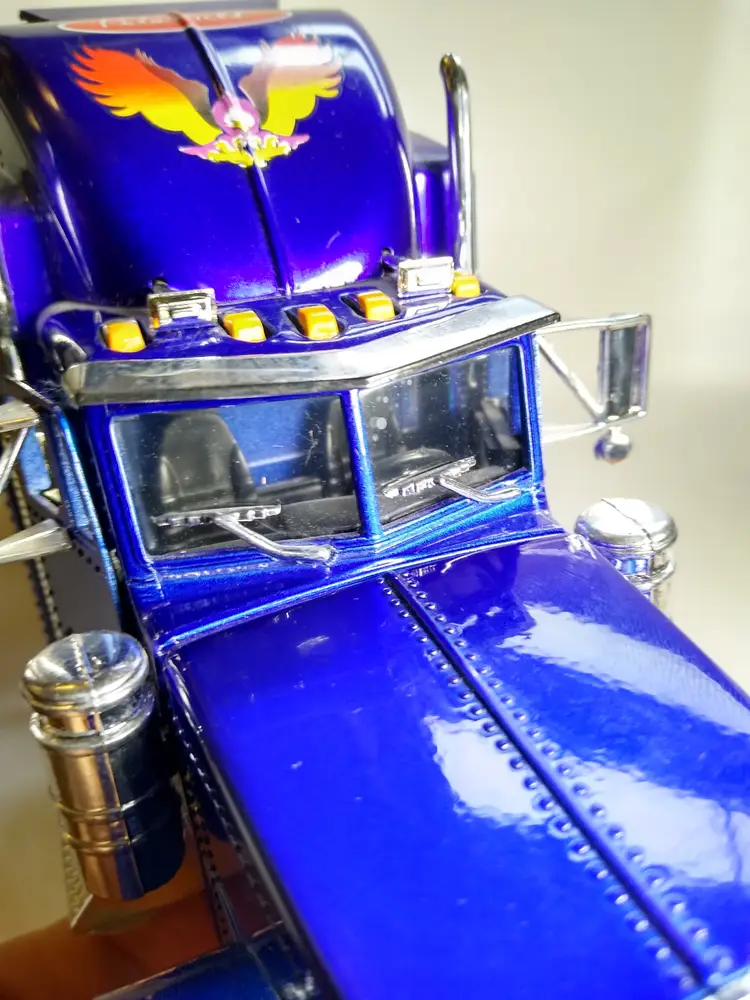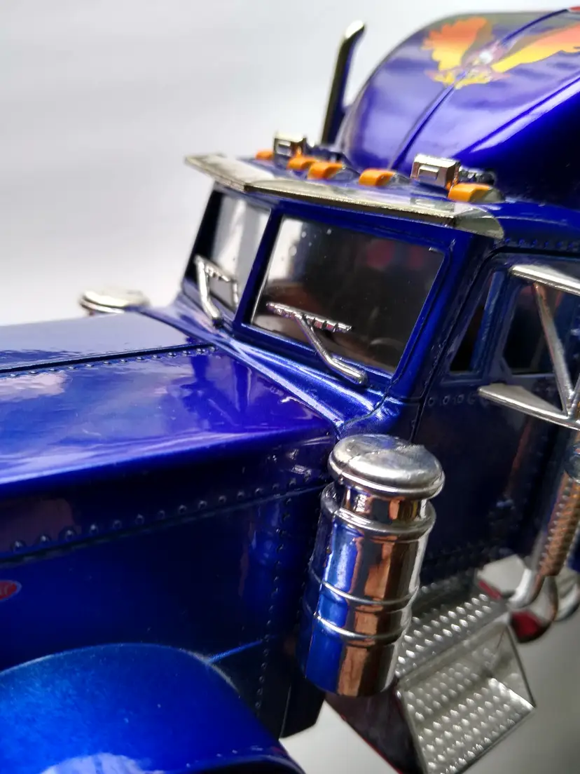Experience the thrill of a classic Peterbilt Semi Tractor Trailer Truck Toy, model 20100, complete with moving doors and hood, adding a dynamic element to your play or display. Painted in a striking deep blue color, this 1:64 scale replica boasts intricate detailing that captures the essence of the iconic Peterbilt make, known for its robustness and durability in real-life transportation applications. Crafted from high-quality plastic, this toy truck is designed with functionality in mind, allowing for imaginative play or collection. It features a classic design that has stood the test of time, complemented by the eagle emblem, which adds a touch of pride to the craftsmanship. Whether for a collector or a budding truck enthusiast, this model is a fine representation of the legendary Peterbilt legacy.